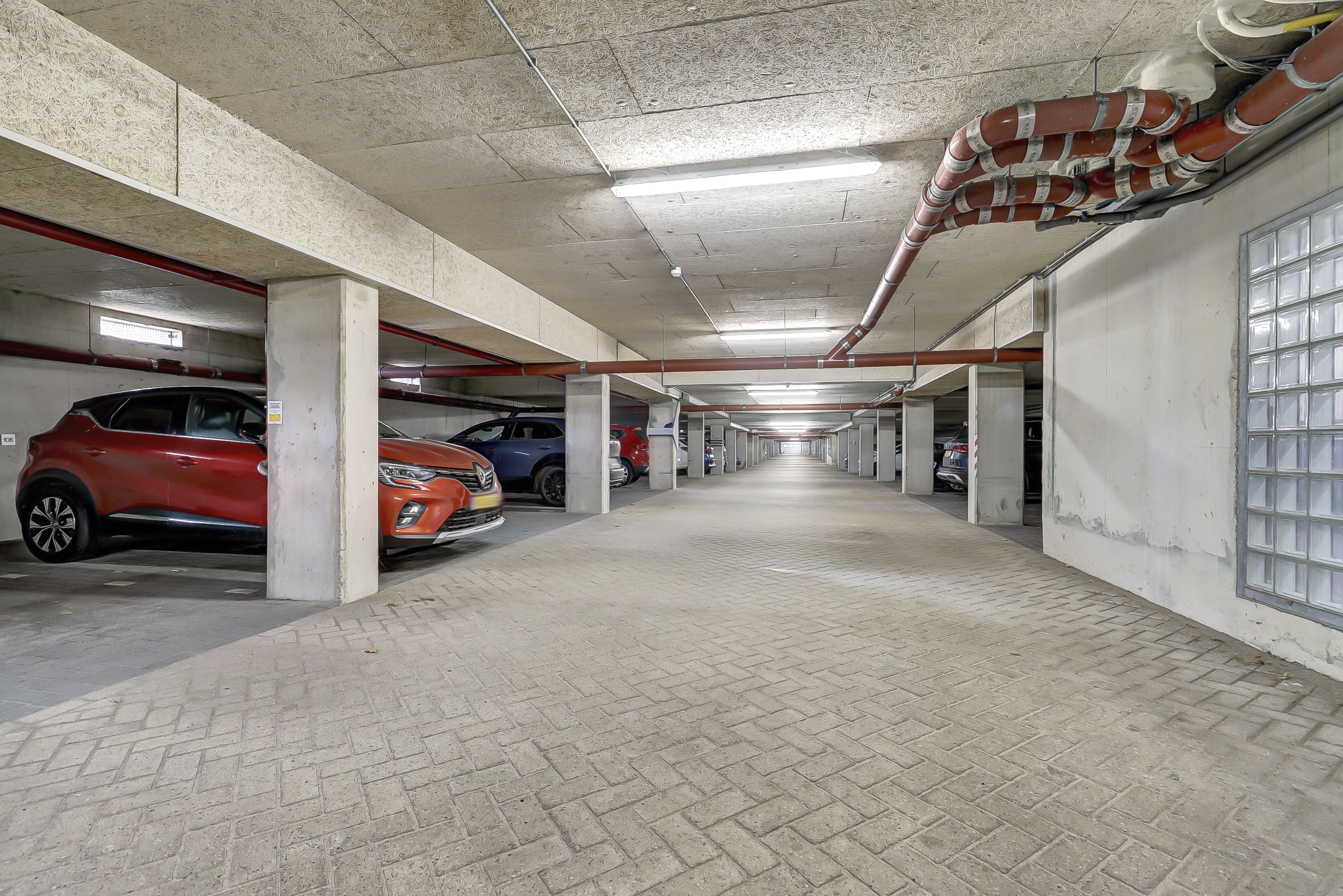 Dit appartementencomplex beschikt over een eigen parkeerplaats in de afgesloten parkeerkelder en een separate berging tevens in het souterrain. Er is een lift aanwezig in het complex.