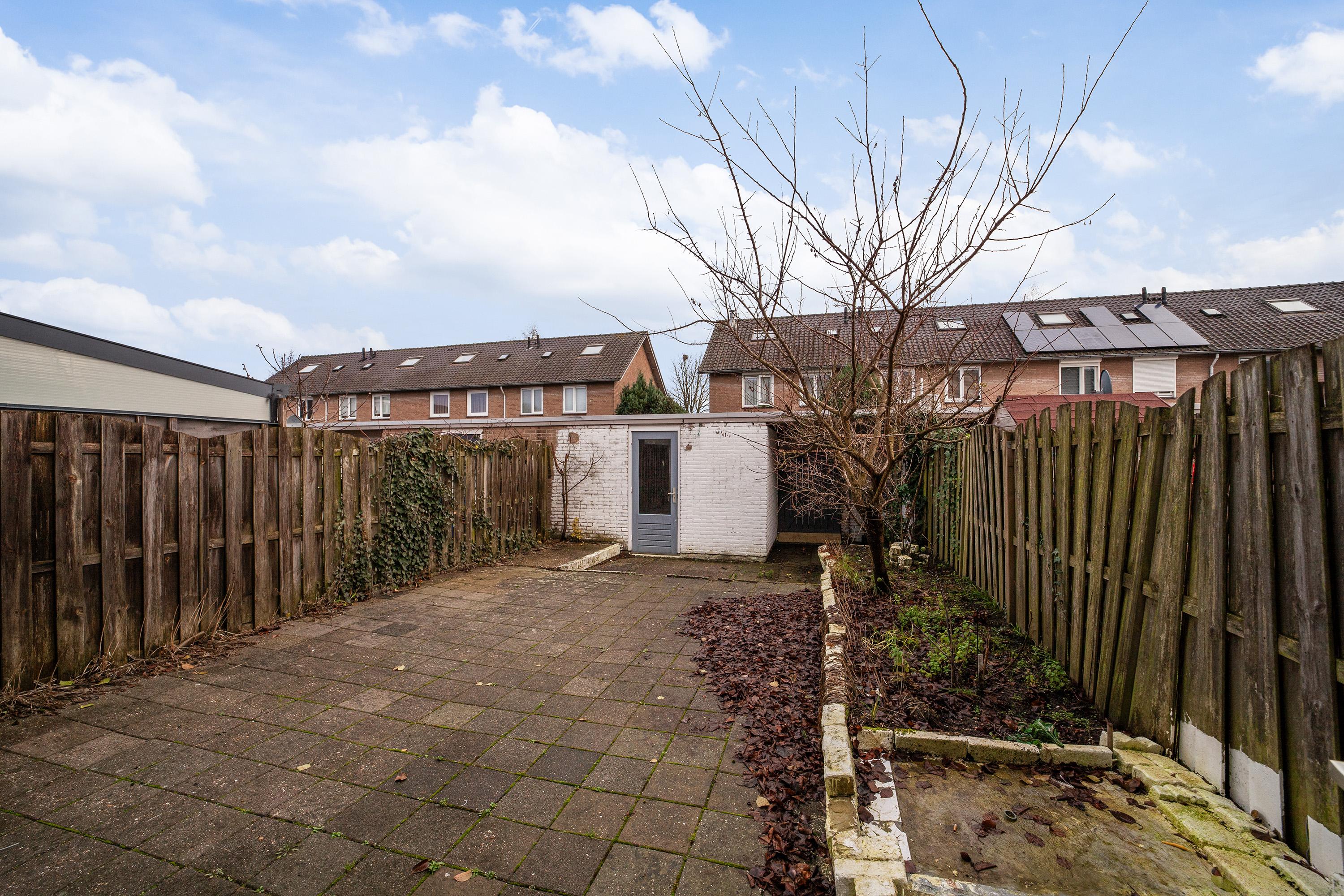 - Tussenwoning met fijne achtertuin, achterom en berging.