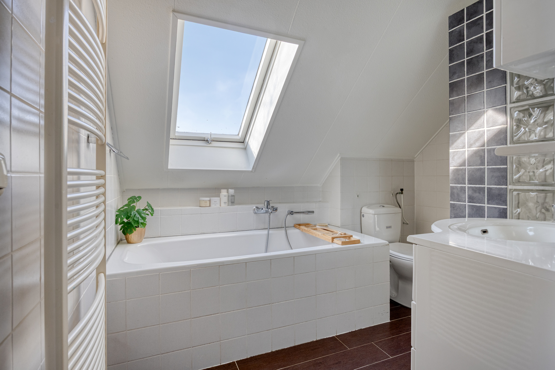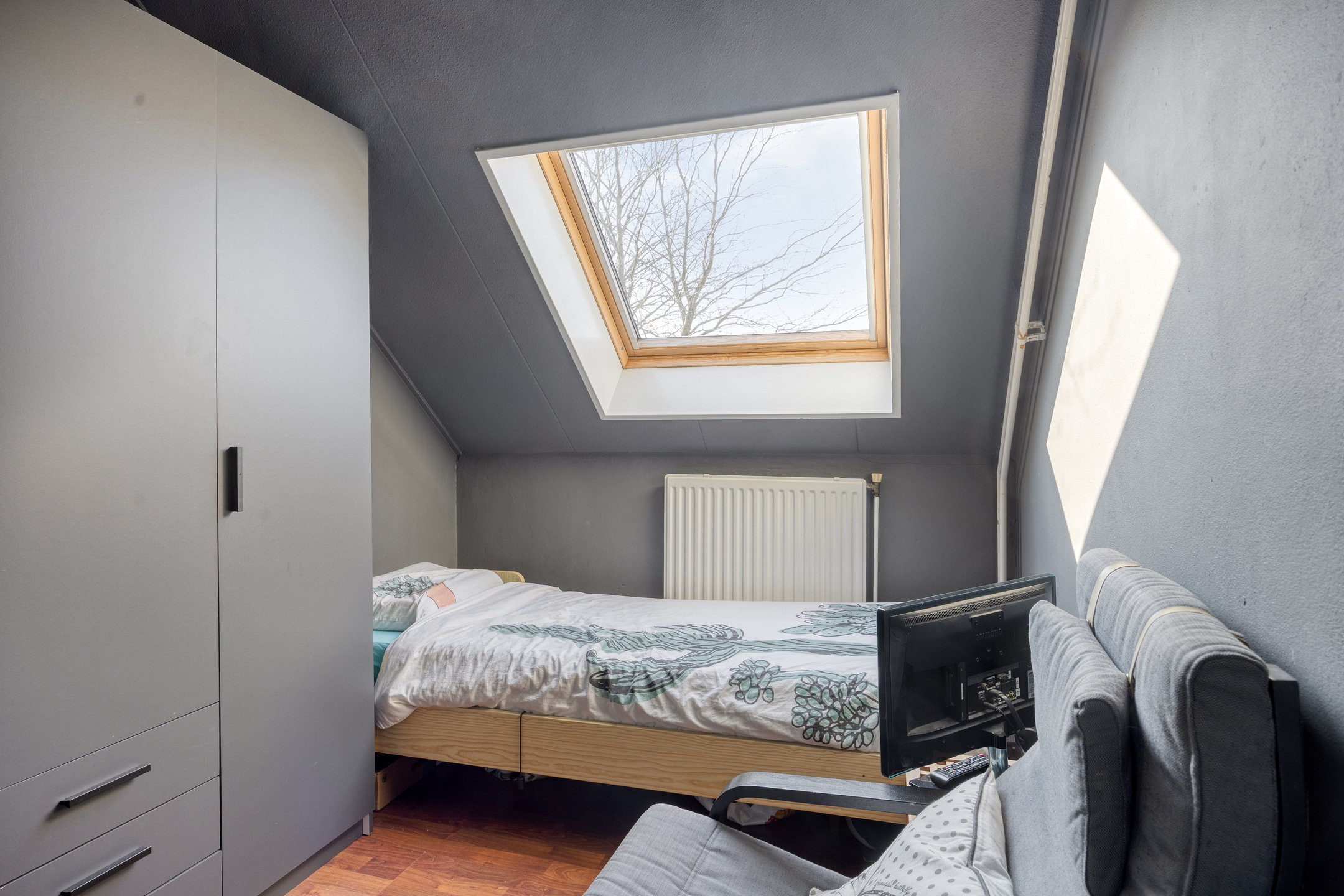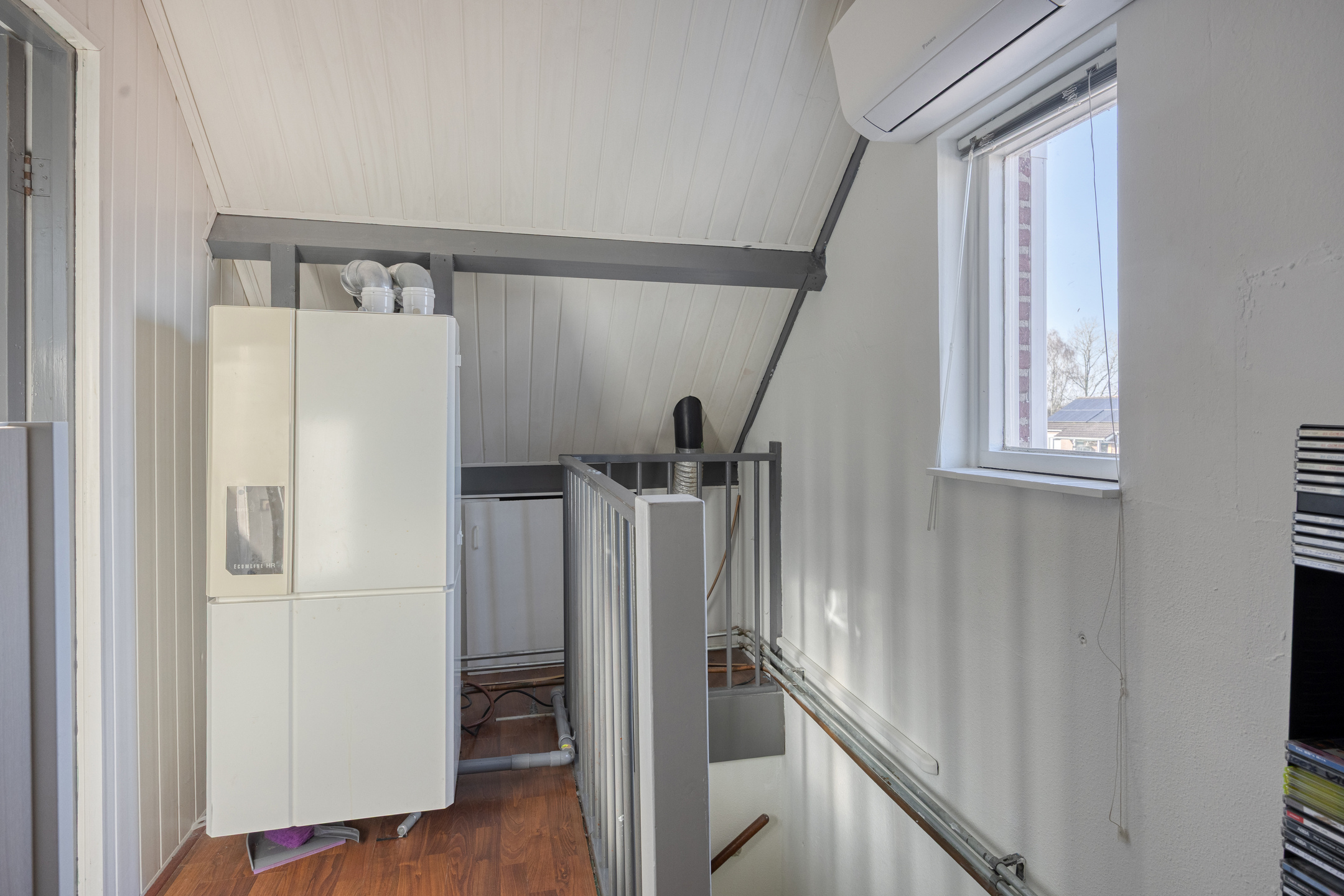 De tweede verdieping is bereikbaar via een vaste trap en biedt een ruime vierde slaapkamer. Het aanwezige dakraam zorgt voor prettig licht en ventilatie. Op de overloop bevinden zich de cv-ketel (Nefit, 1997) en witgoedaansluitingen.