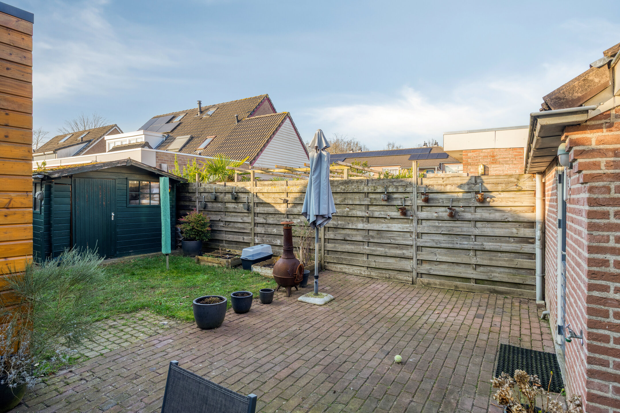 - Zonnige achtertuin op het westen met berging;