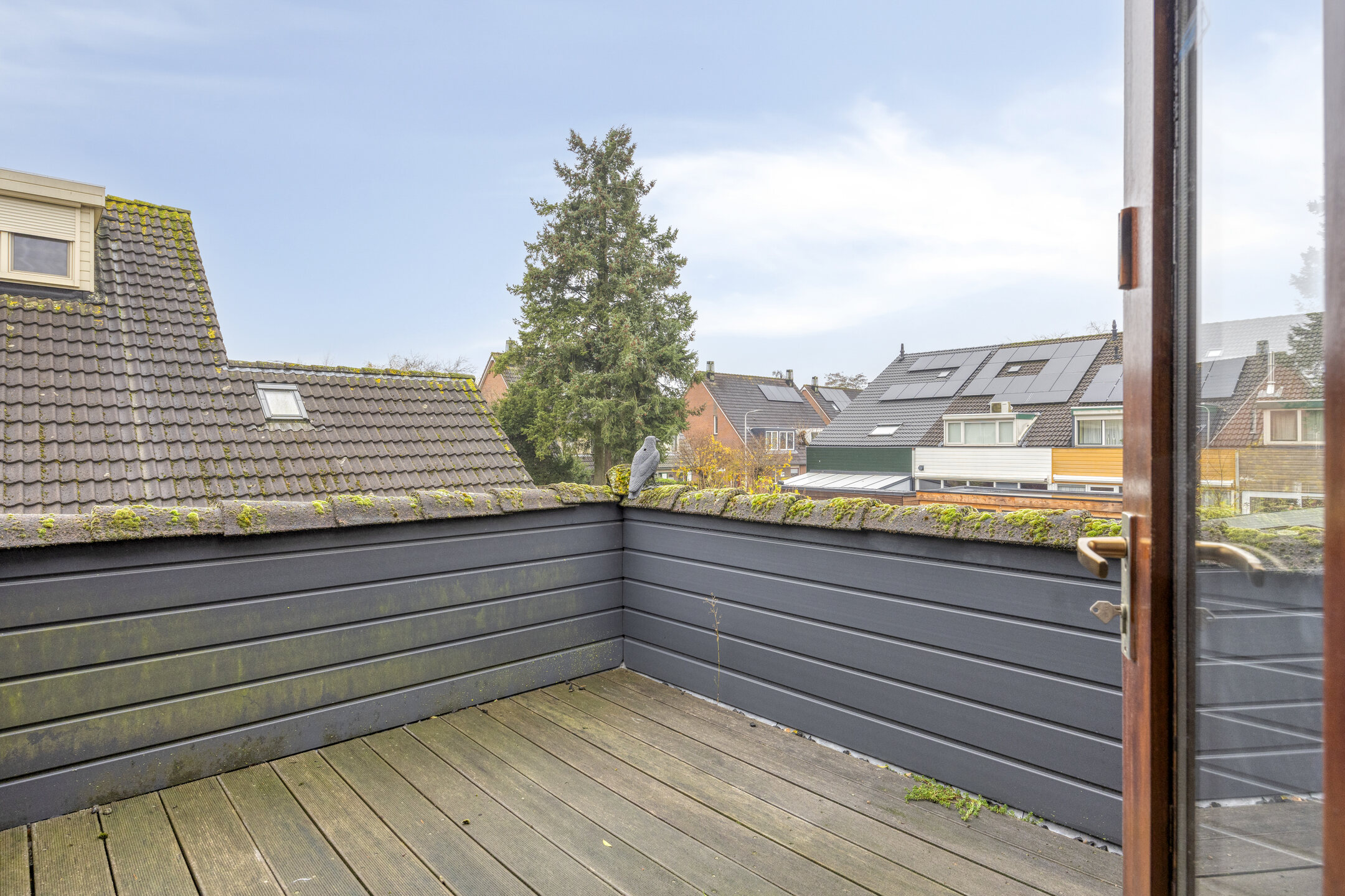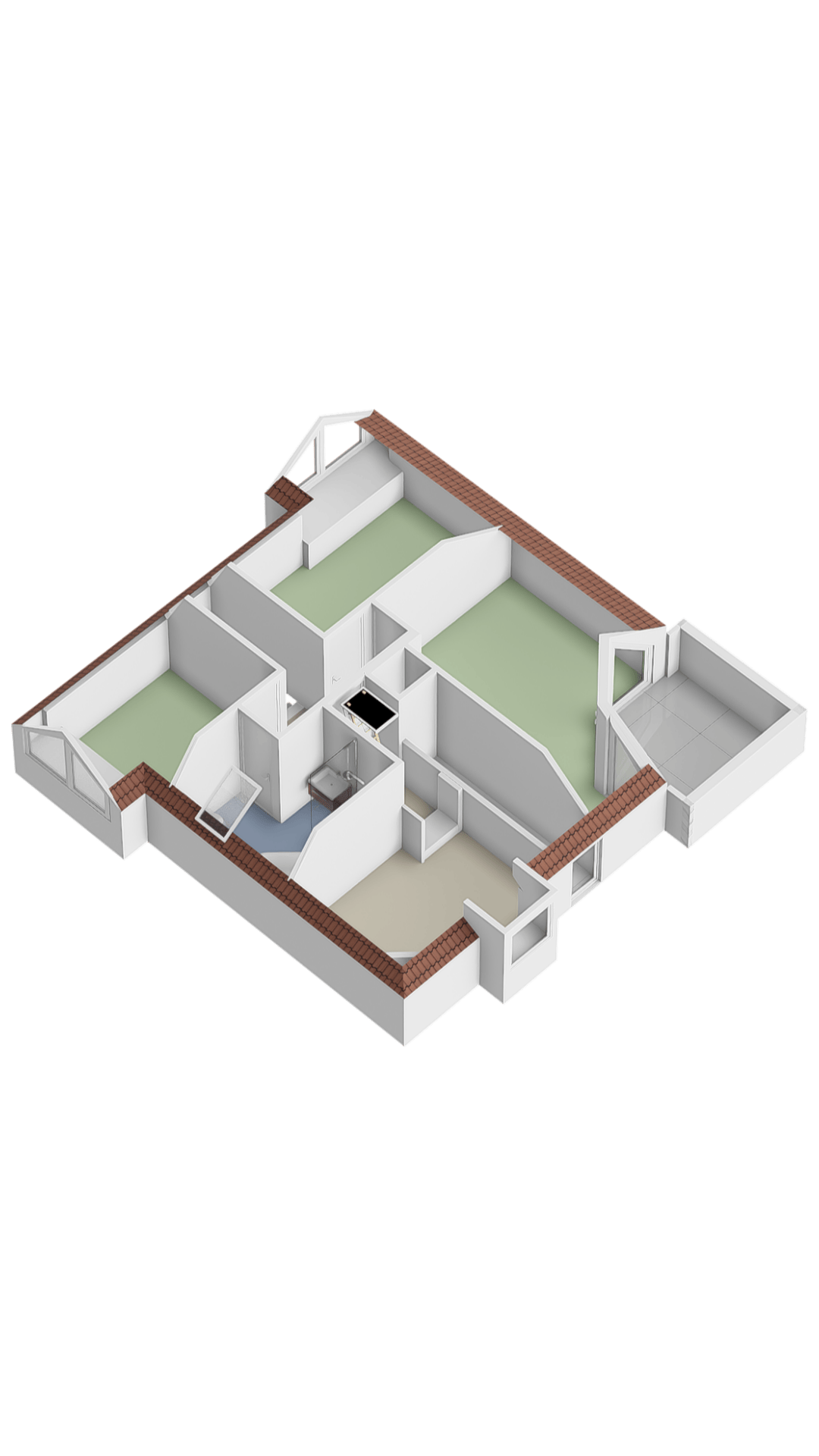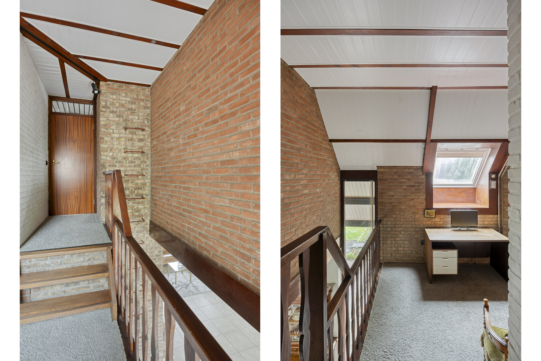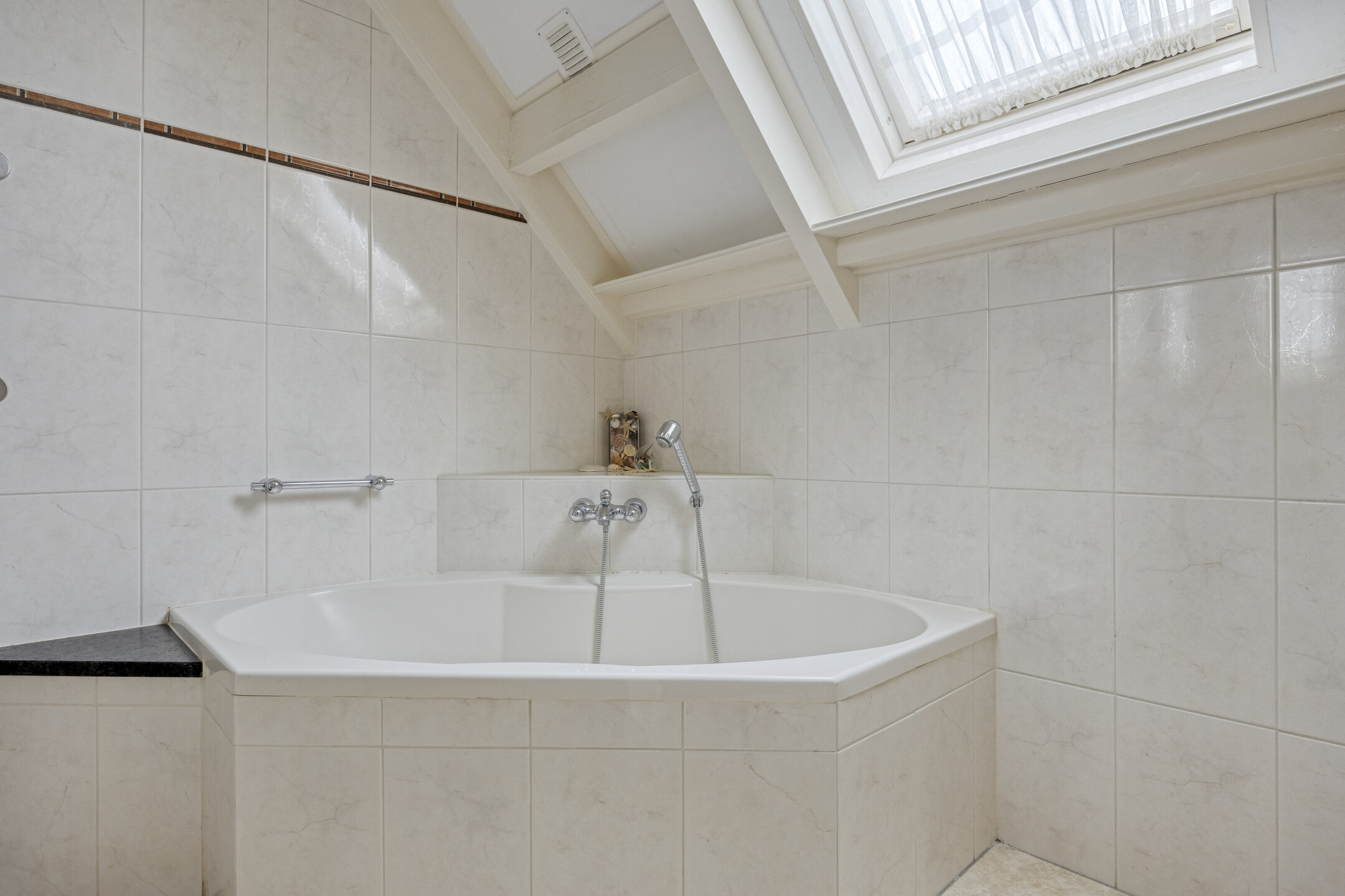 De overloop biedt toegang tot drie ruime slaapkamers. De masterbedroom beschikt over een balkon, dat eventueel bij de kamer getrokken kan worden voor extra woonoppervlak. Dankzij het aanwezige dakraam is de vide een lichte ruimte. Momenteel wordt deze gebruikt als werkkamer, maar het creëren van een vierde slaapkamer behoort hier zeker tot de mogelijkheden. De badkamer is voorzien van een ligbad, inloopdouche, toilet, vloerverwarming, wastafel en wastafelmeubel. Dankzij de raampartijen geniet je hier van natuurlijke lichtinval en goede ventilatie.