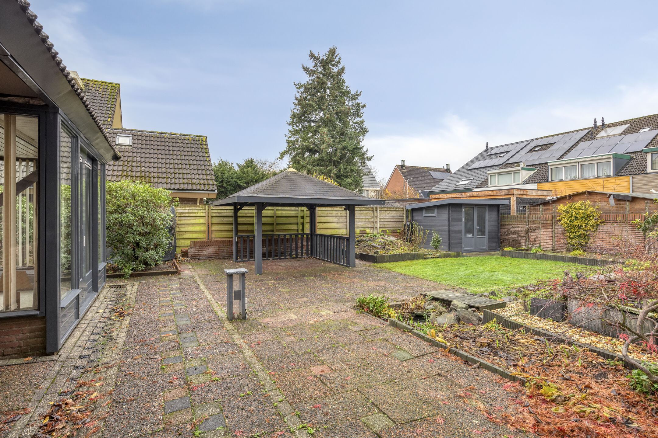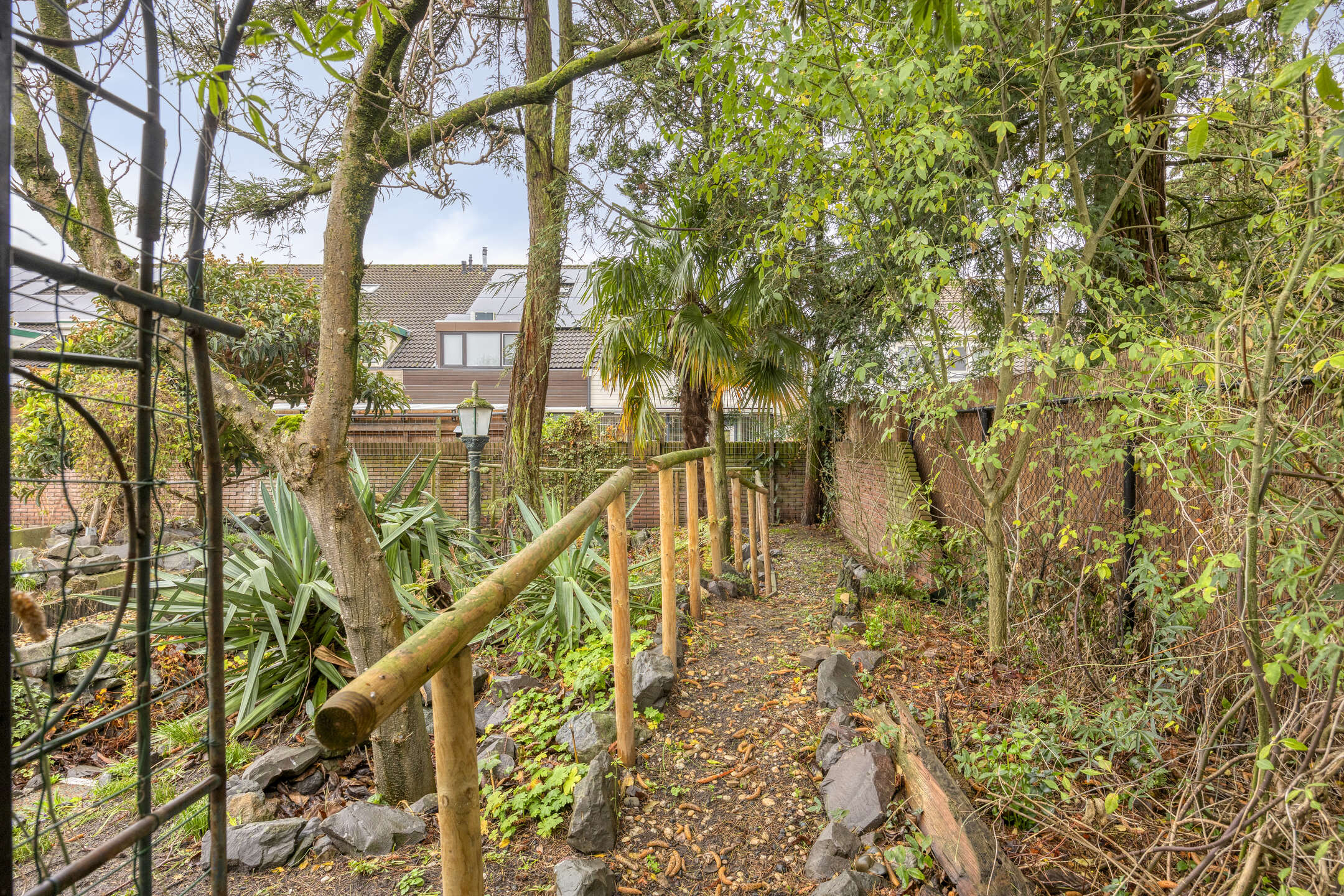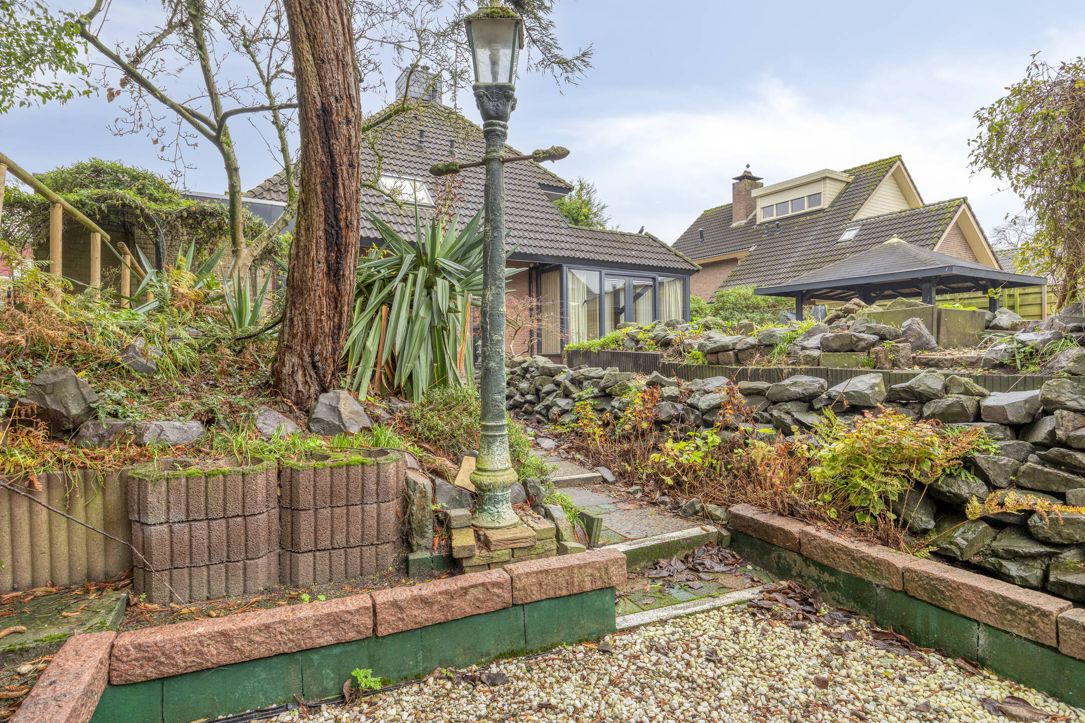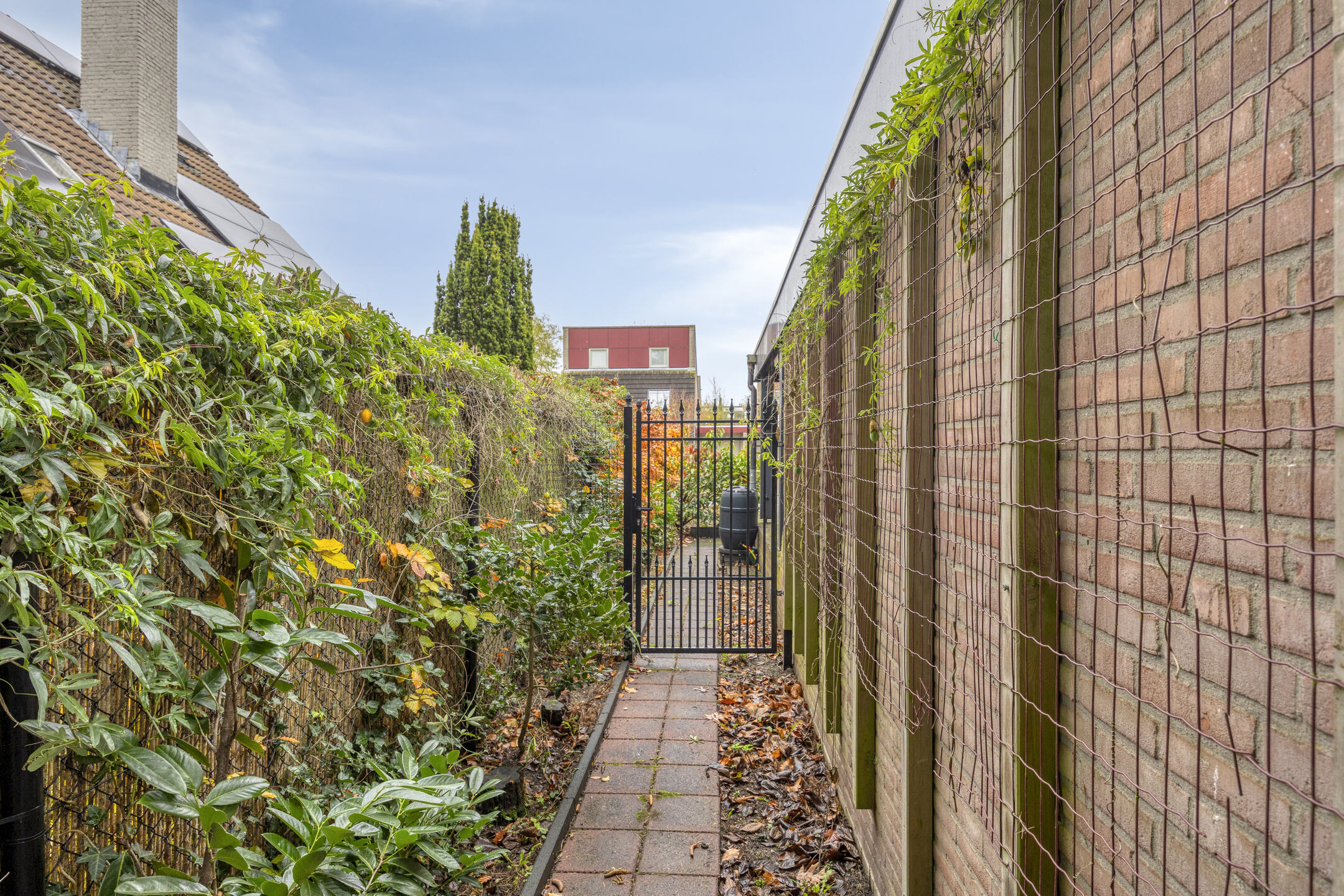 De tuin rondom is fraai aangelegd en biedt diverse plekken om van de zon of schaduw te genieten. Dankzij de ligging van de woning en het volwassen groen geniet je van optimale privacy. De carport met lichtkoepel bevindt zich aan de voorzijde en biedt ruimte om op eigen terrein te parkeren.