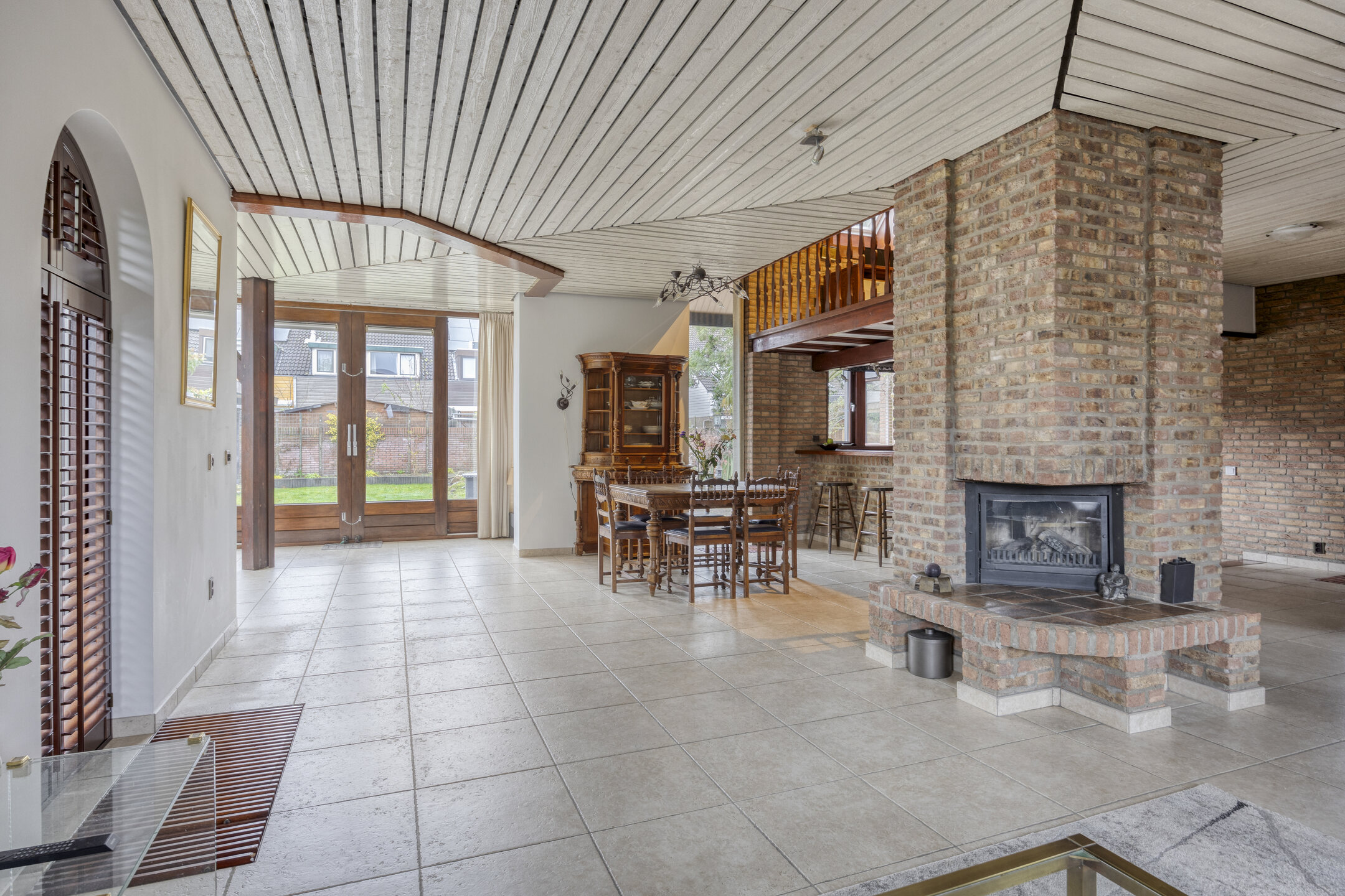 Via de entree kom je binnen in de hal met toegang tot het toilet en de living. De woonkamer valt direct op door de fraaie vide, grote raampartijen en de prettige lichtinval. De ruimte voelt open en ruimtelijk, een duidelijk kenmerk van de architectuur uit deze periode. De woonkamer valt direct op door de fraaie vide, grote raampartijen en de prettige lichtinval.