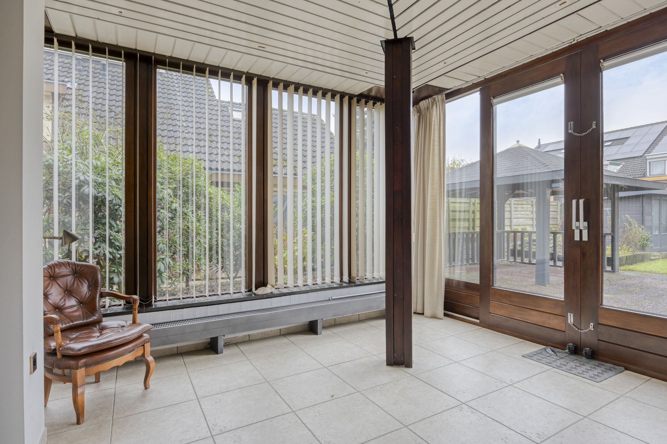 • Aangebouwde serre (1985) met uitzicht op de fraaie tuin