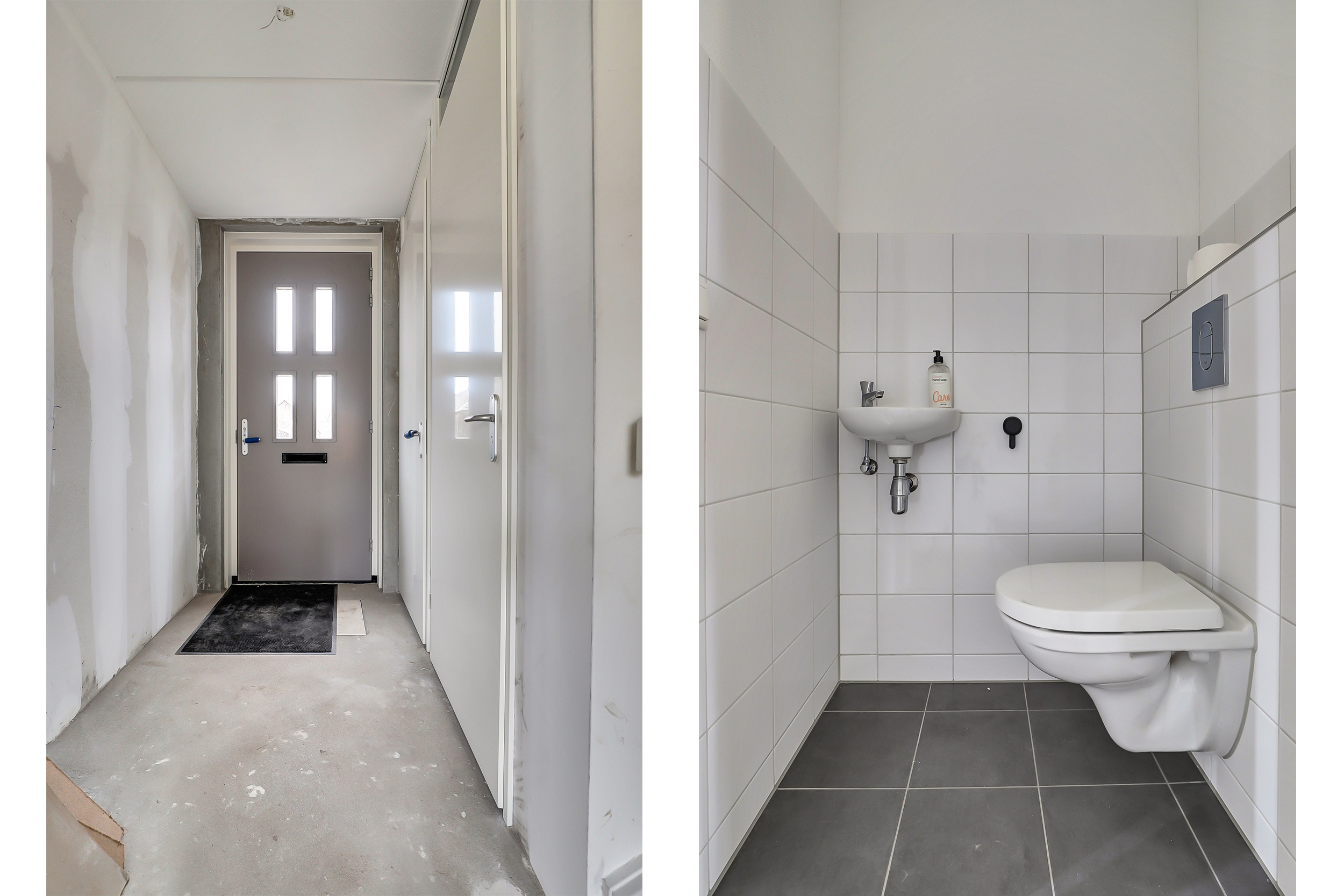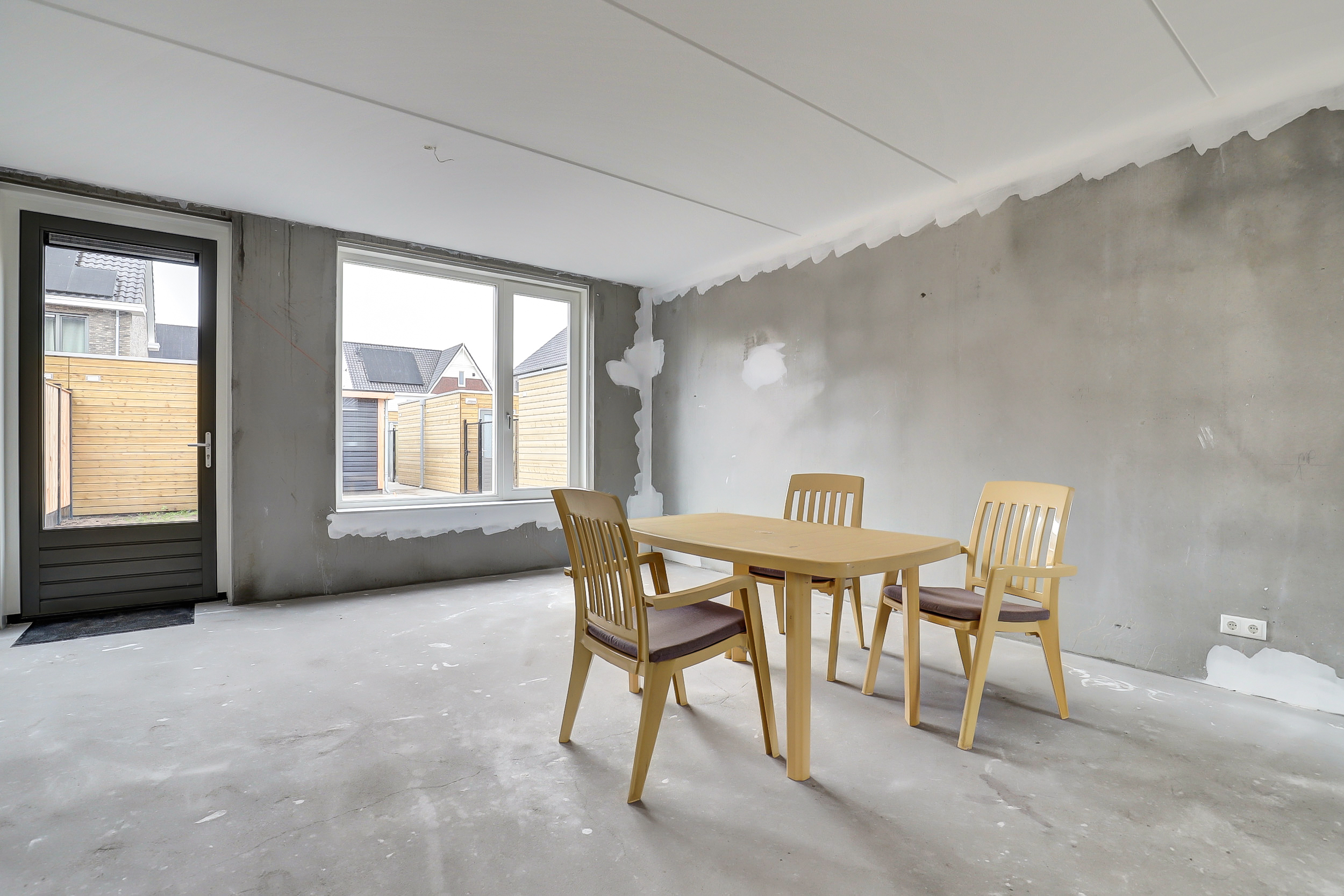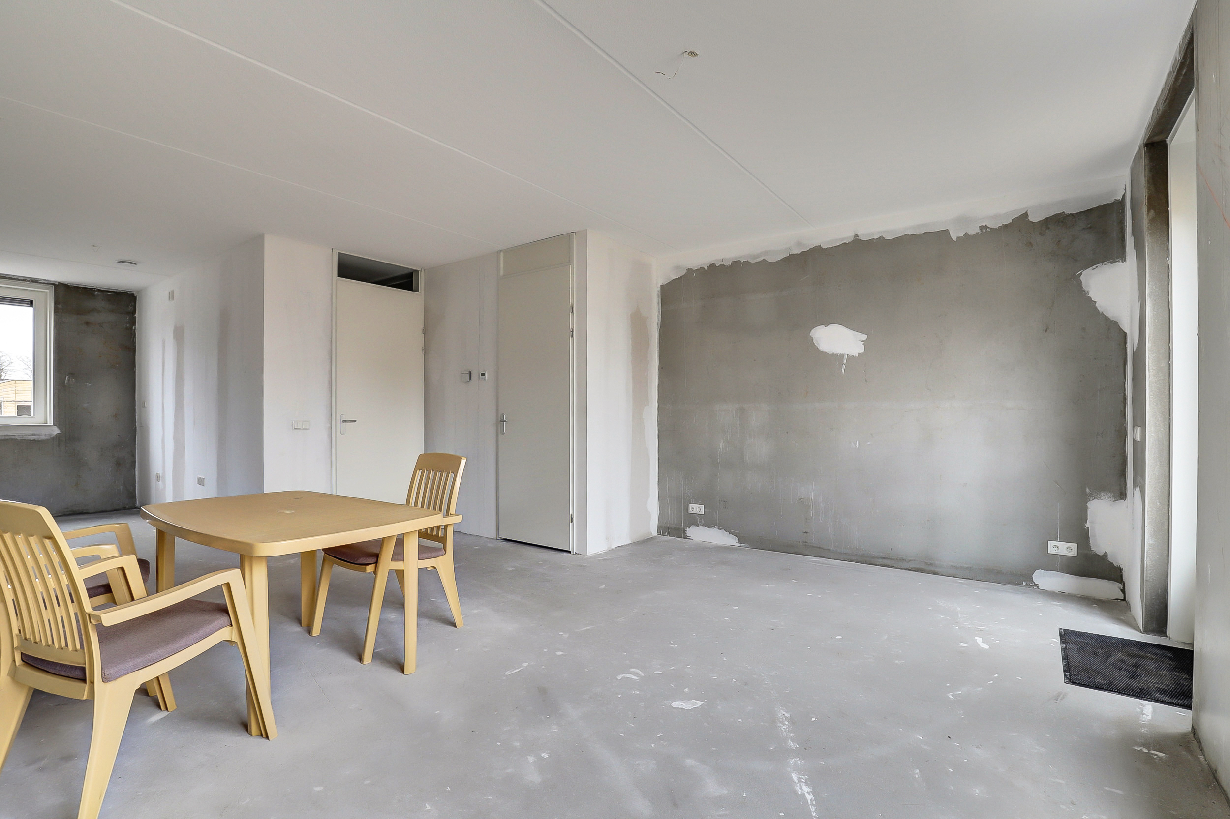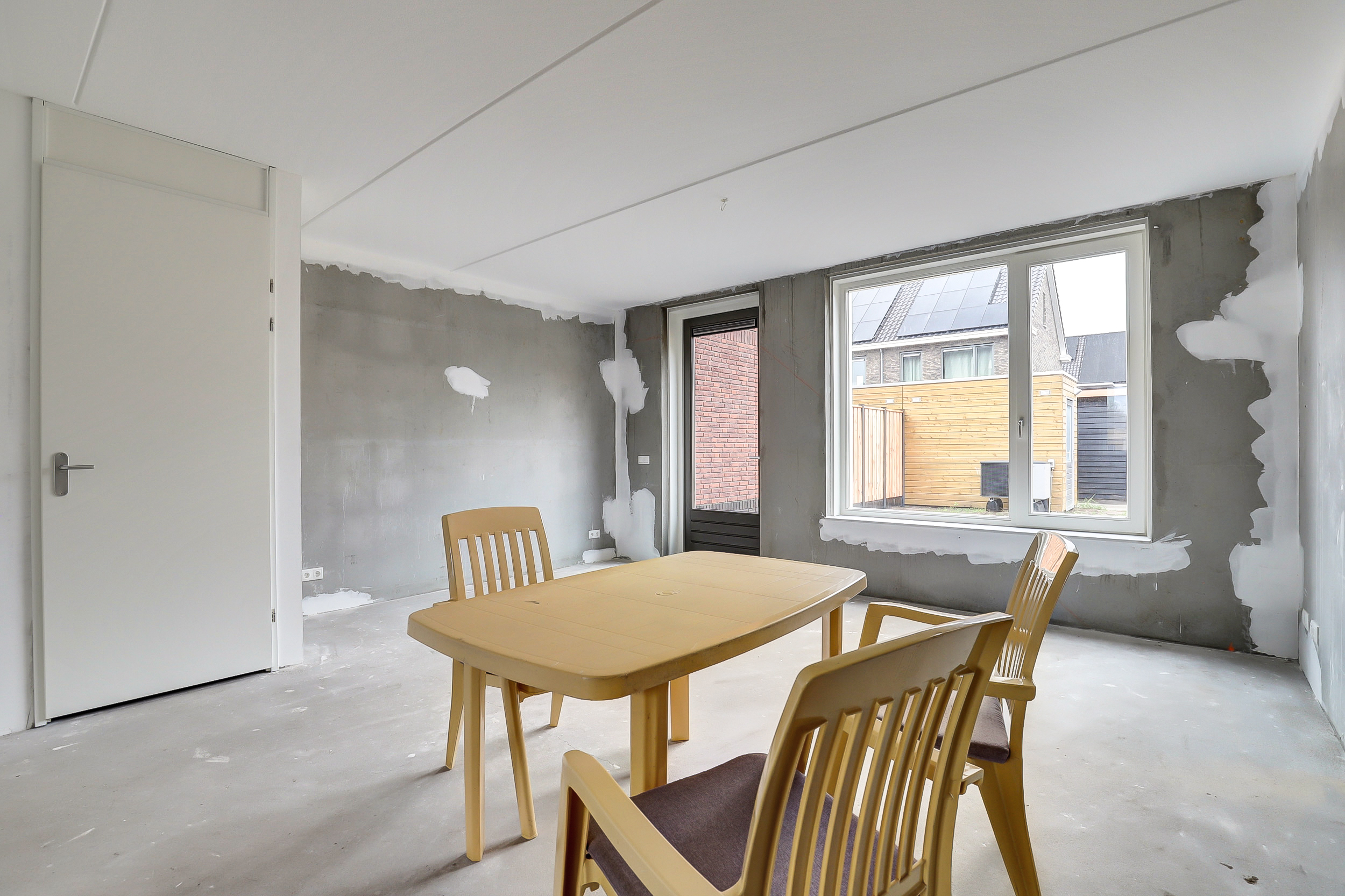 Je komt binnen in de hal met toiletruimte, meterkast en technische ruimte met de warmtepomp. De lichte woonkamer is tuingericht en beschikt over een trapkast. De halfopen keuken in hoekopstelling wordt binnenkort geplaatst en is uitgerust met een inductiekookplaat, afzuigkap, vaatwasser, oven en koel/vriescombinatie, alle van het merk Etna. Vanuit de keuken kijk je uit op de straat en maakt het een fijne plek om te koken én te leven.