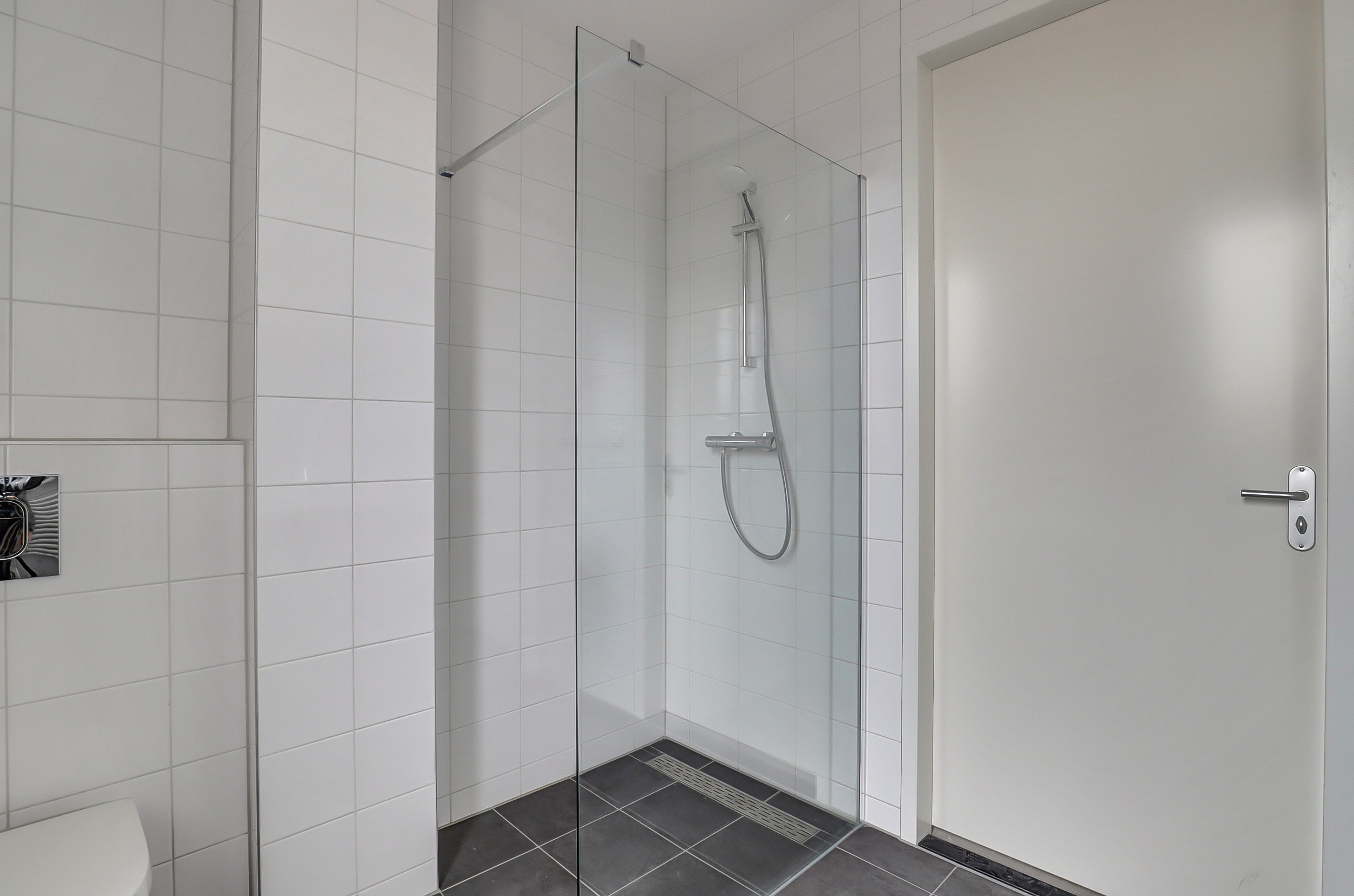 Op de eerste verdieping vind je drie volwaardige slaapkamers en een volledig betegelde badkamer in een neutrale kleurstelling met inloopdouche, tweede toilet en wastafel. De vloerverwarming is zowel op de begane grond als op de slaapkamers op de eerste verdieping aanwezig.