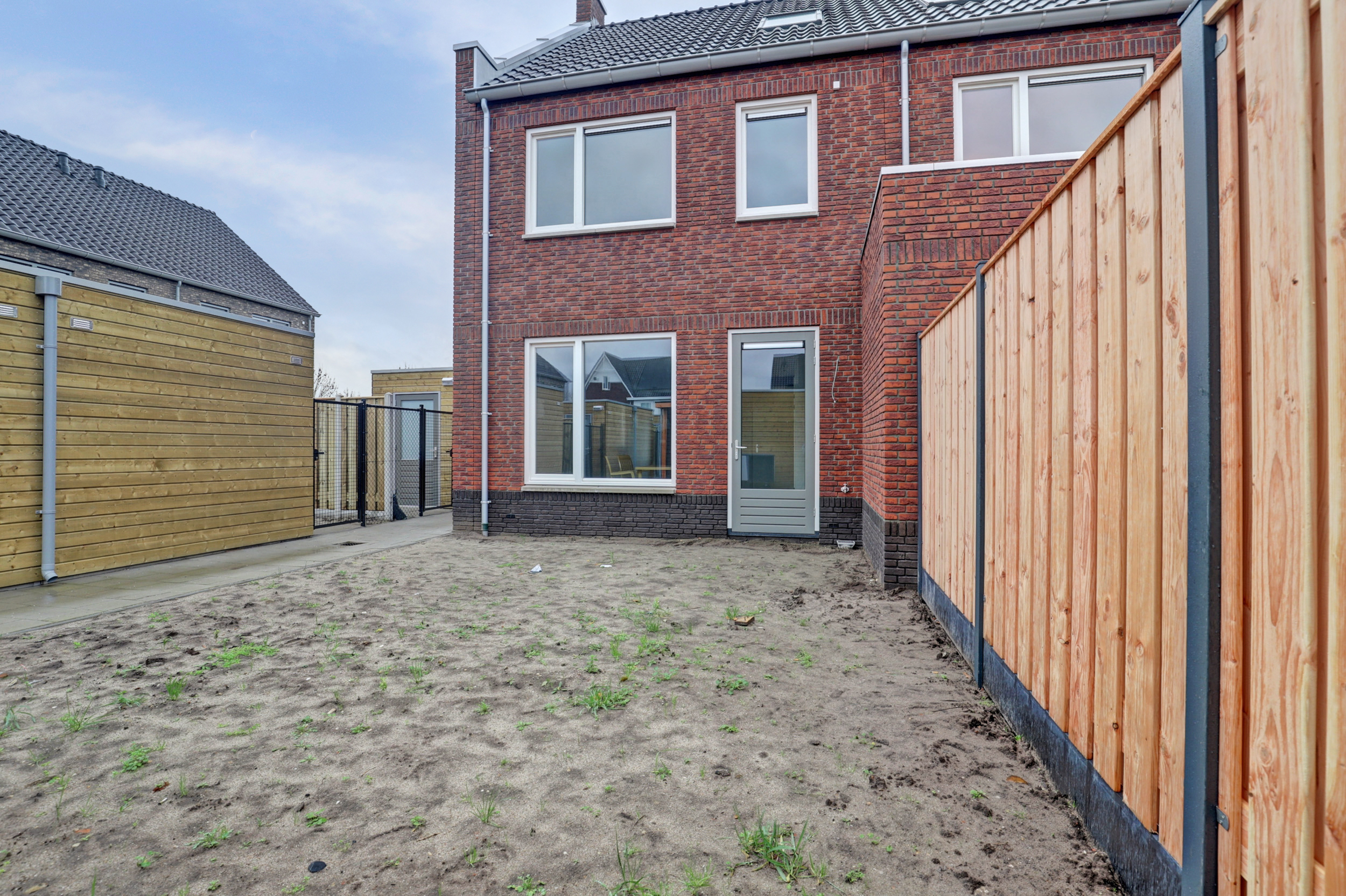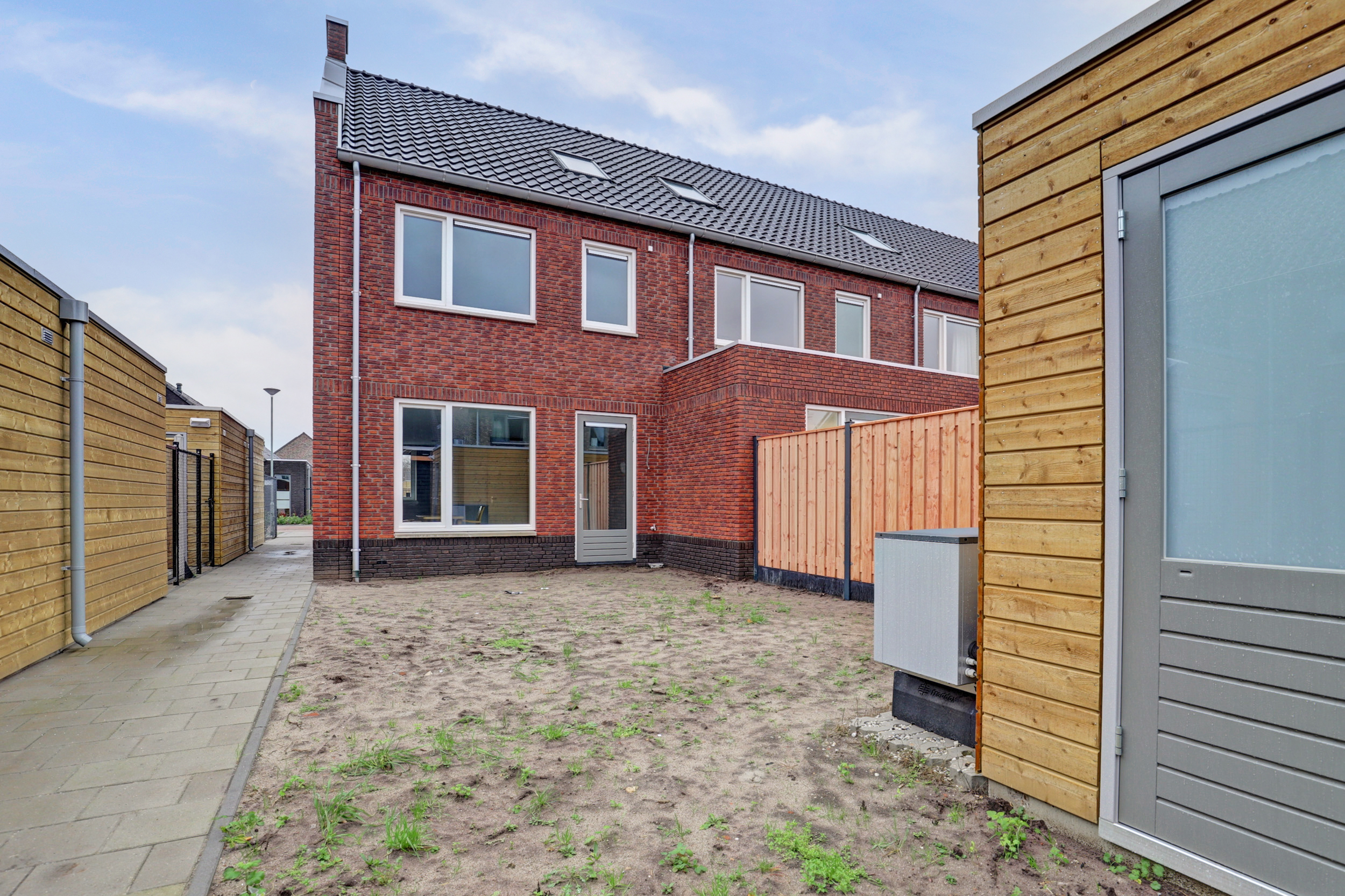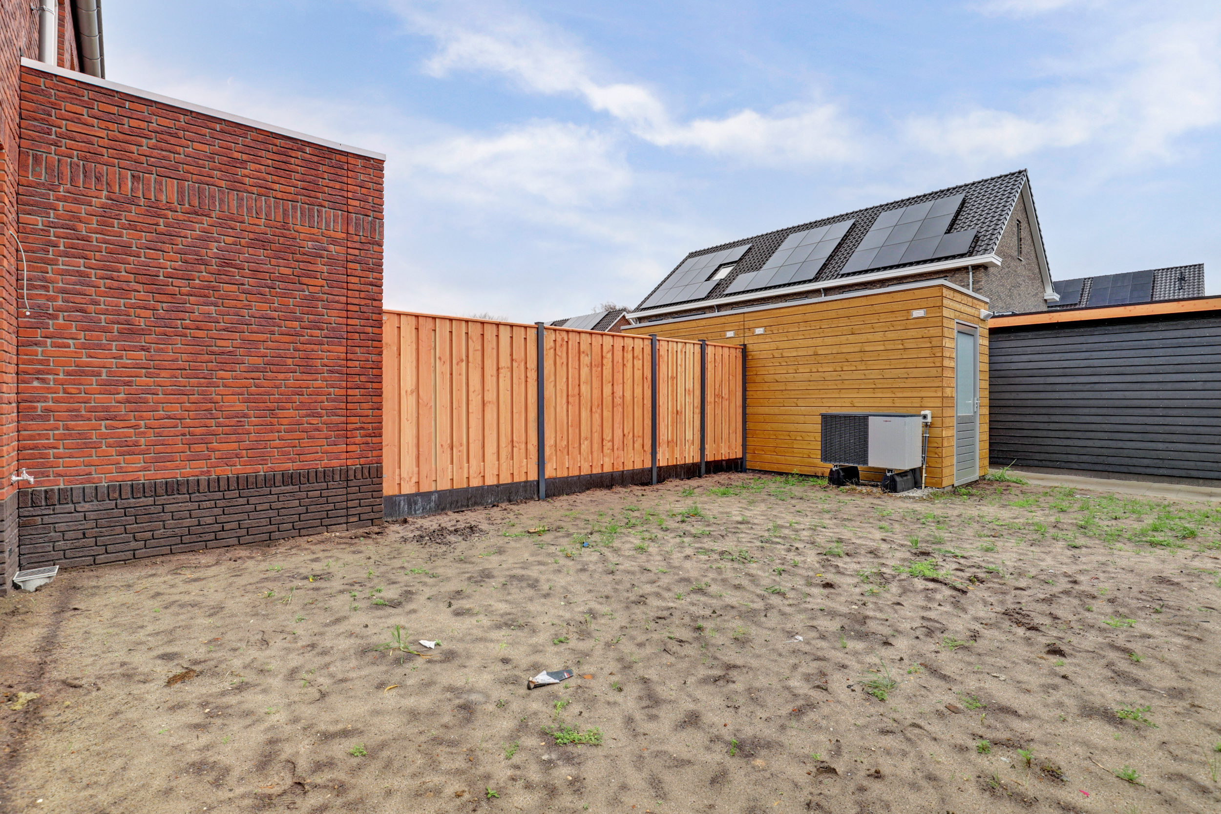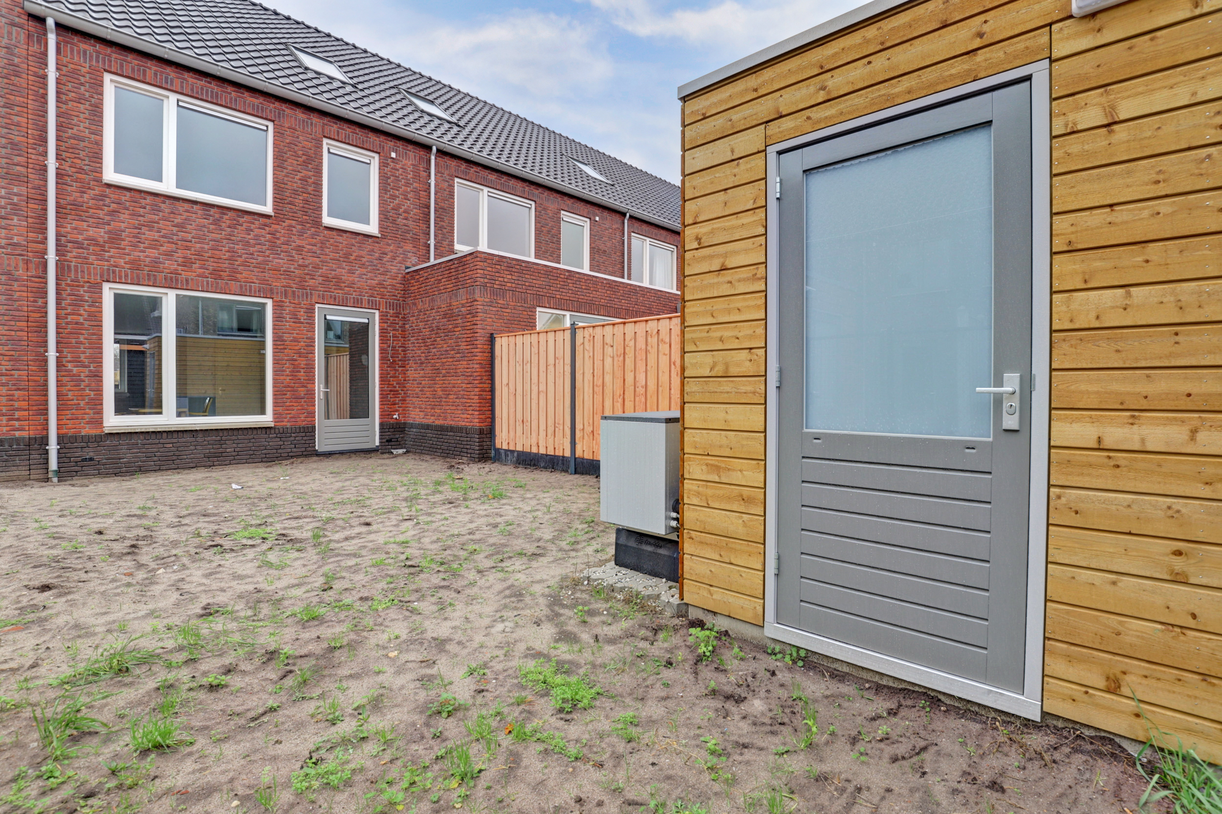 De achtertuin (ca. 47 m²) ligt op het noordoosten en heeft een vrijstaande houten berging met elektra. De tuin dient nog te worden aangelegd en deels omheind, waardoor je volledige vrijheid hebt in de invulling. Let op: er geldt een recht van overpad.