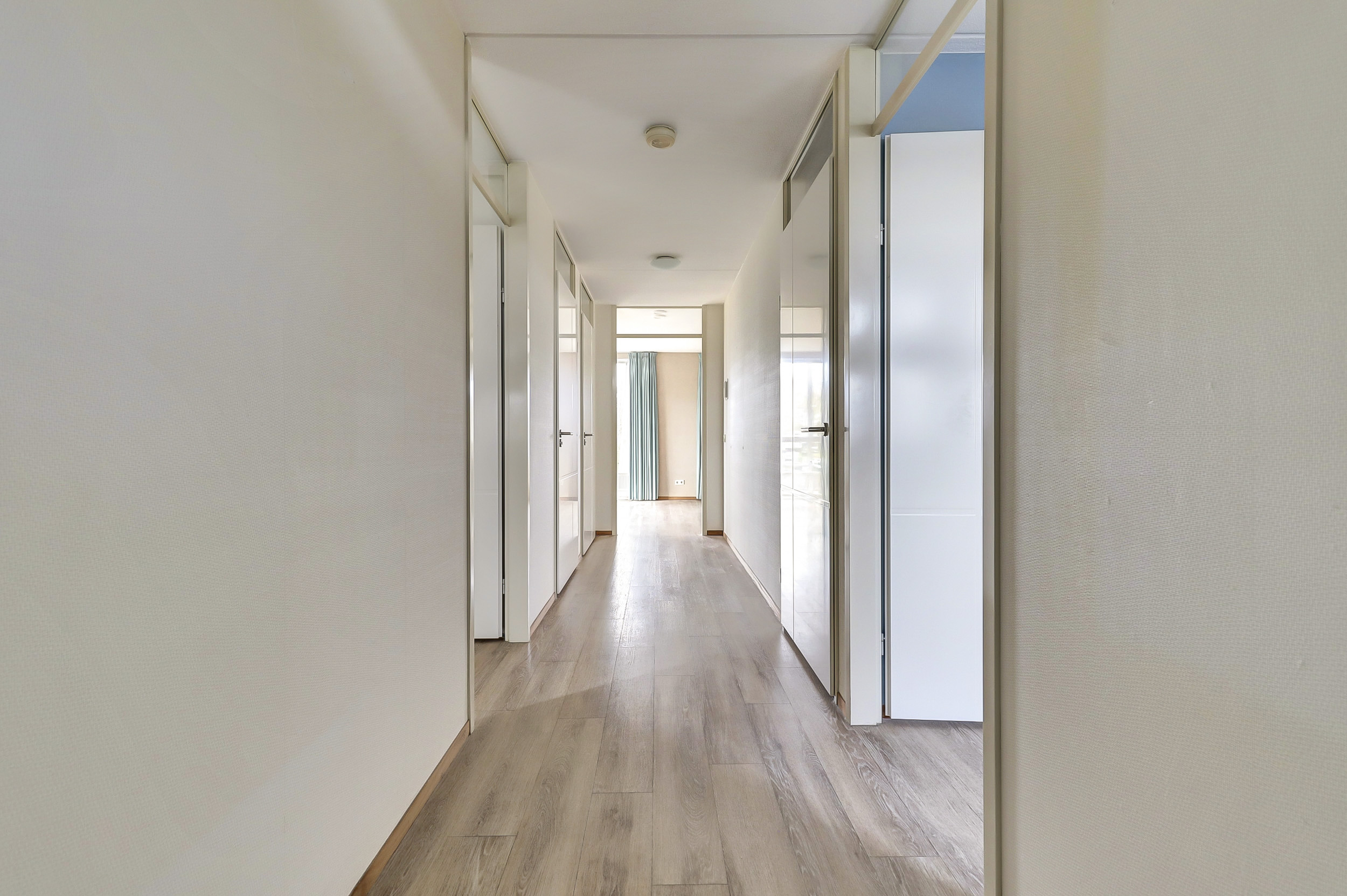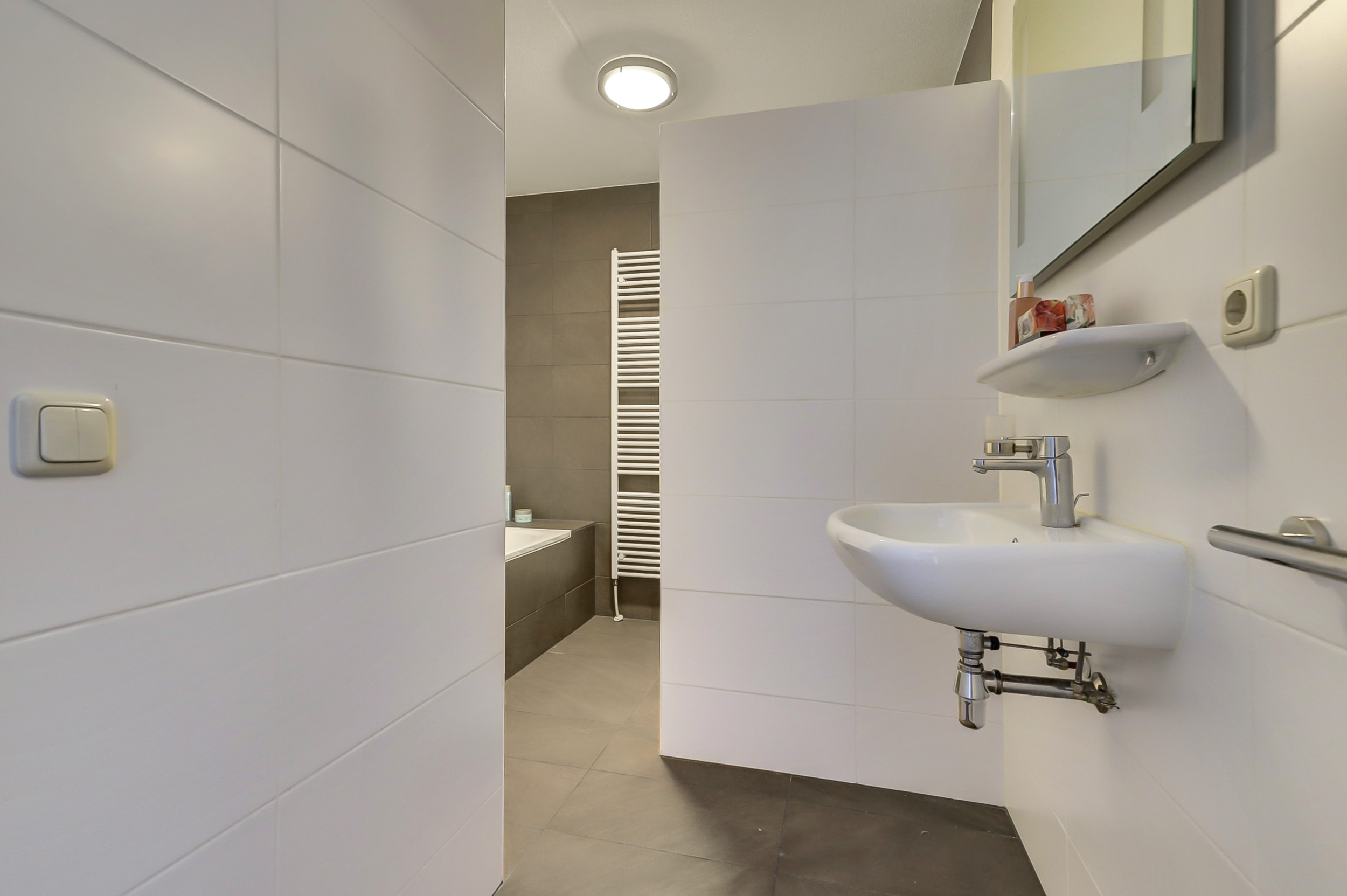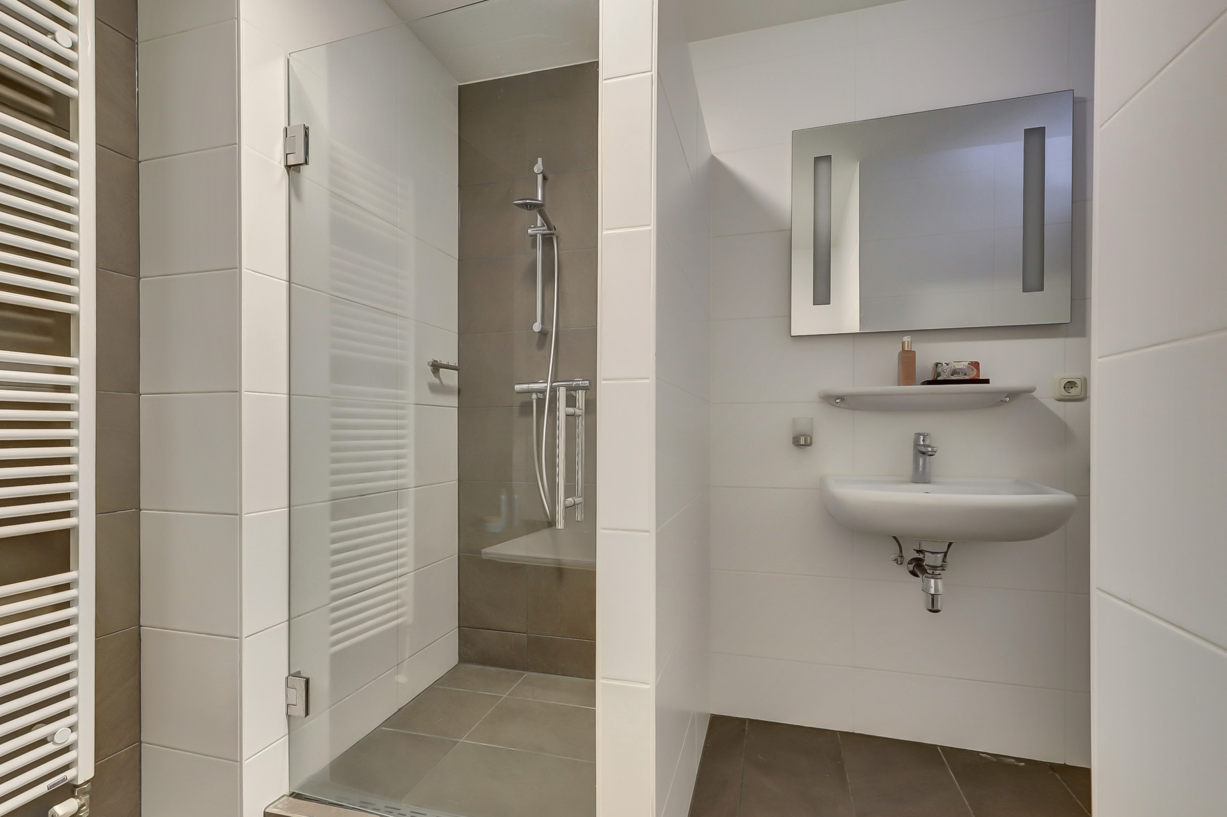 Je appartement ligt aan het einde van de galerij in een net onderhouden complex. De centrale entree open je via een videofooninstallatie. Binnen kom je in de algemene hal met postvakken, trapopgang en lift naar de appartementen en de garage. In de woninghal heb je toegang tot het toilet, de badkamer, de berging, twee slaapkamers en de woon-/eetkamer met halfopen keuken. Het toilet is uitgevoerd met een fonteintje en een hangtoilet. De badkamer is luxe afgewerkt en volledig betegeld, met een designradiator, wastafel met spiegel, een comfortabel ligbad met douchekop én een inloopdouche.