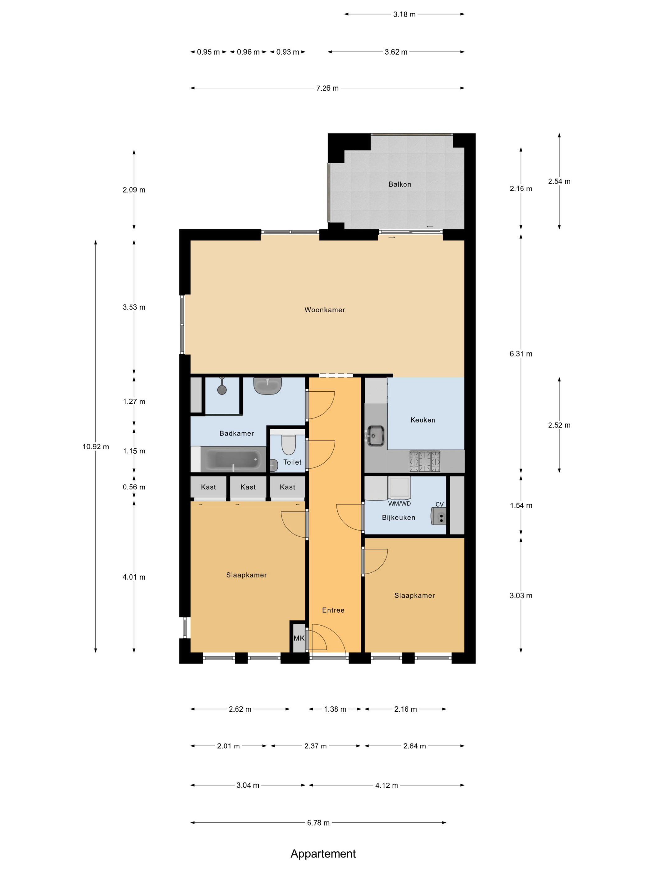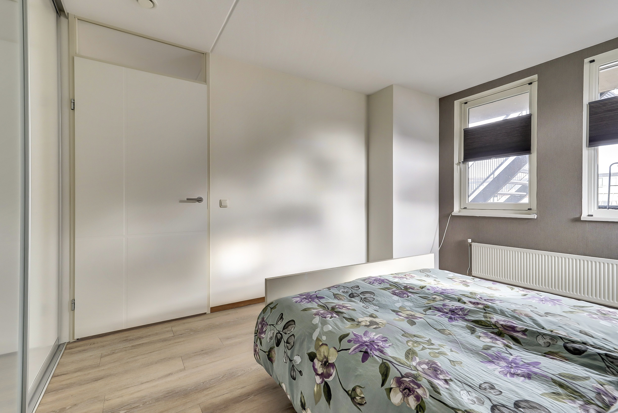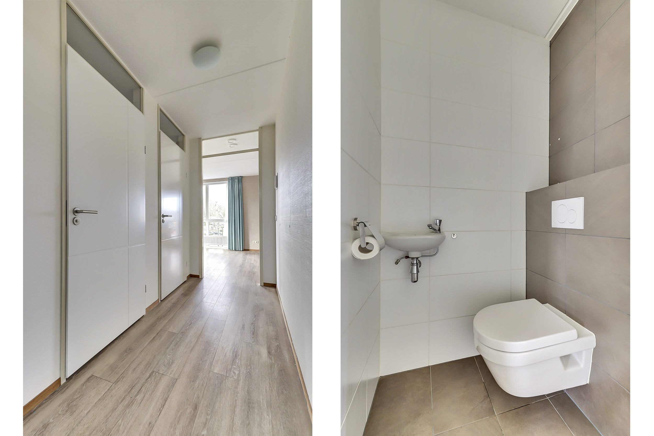Je appartement ligt aan het einde van de galerij in een net onderhouden complex. De centrale entree open je via een videofooninstallatie. Binnen kom je in de algemene hal met postvakken, trapopgang en lift naar de appartementen en de garage. In de woninghal heb je toegang tot het toilet, de badkamer, de berging, twee slaapkamers en de woon-/eetkamer met halfopen keuken. Het toilet is uitgevoerd met een fonteintje en een hangtoilet. De badkamer is luxe afgewerkt en volledig betegeld, met een designradiator, wastafel met spiegel, een comfortabel ligbad met douchekop én een inloopdouche.