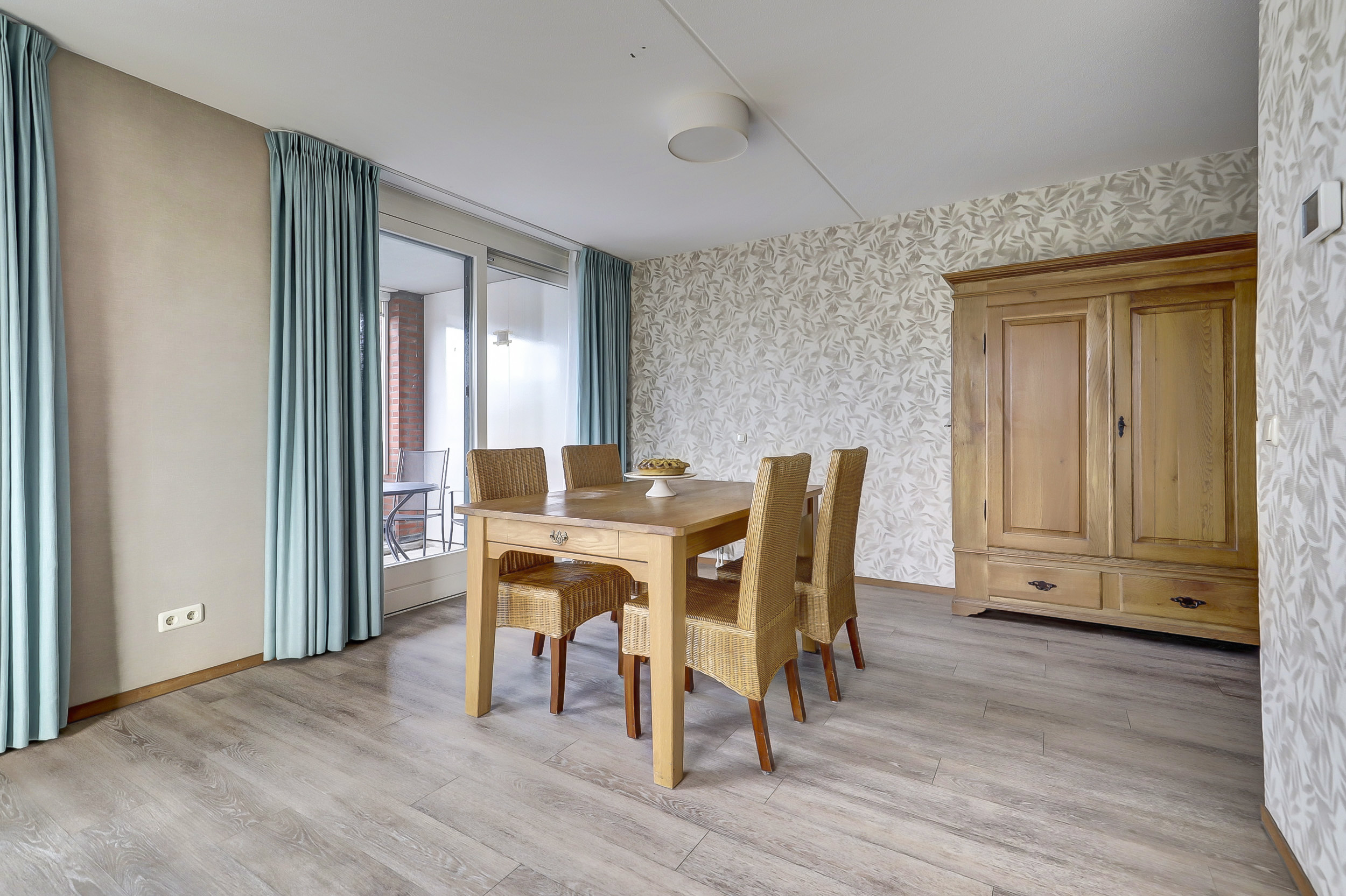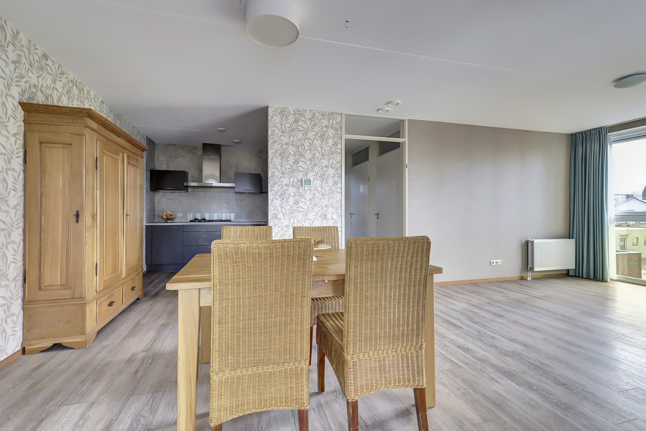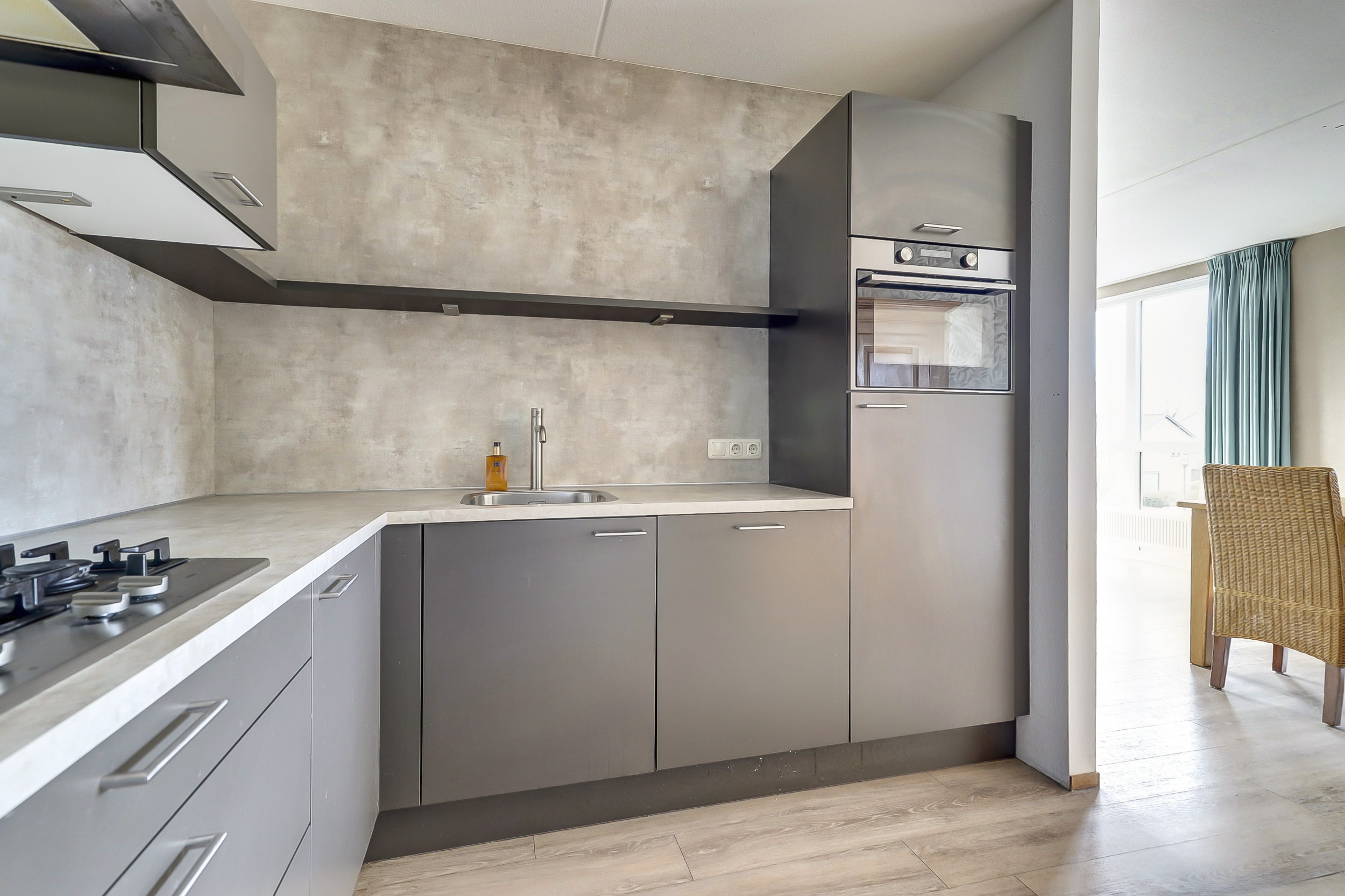 De woon-/eetkamer springt eruit door de hoeveelheid licht. Door de hoekligging heb je ramen aan twee zijden en met de zuidwestelijke ligging zit je hier heerlijk in de zon. Via de glazen schuifpui loop je de loggia op: een fijne, beschutte buitenruimte met vrij uitzicht, waar je echt je eigen plek van maakt. De keuken is compleet uitgerust met een 5-pits gasfornuis met wokbrander, afzuigkap, combimagnetron, vaatwasser en een ruime koelkast.