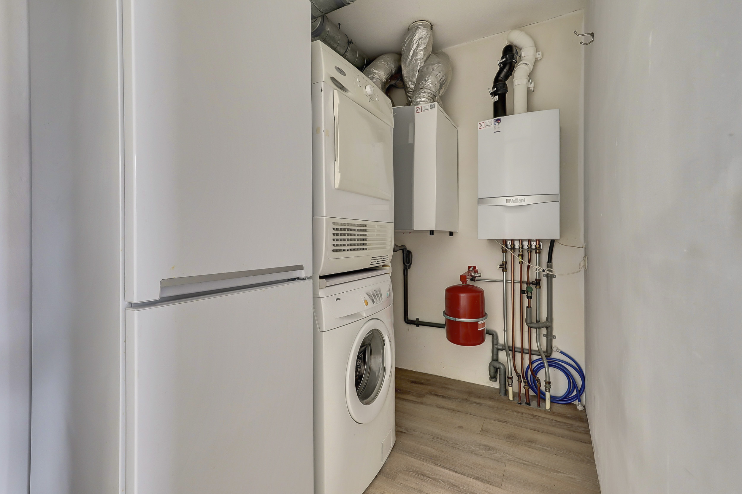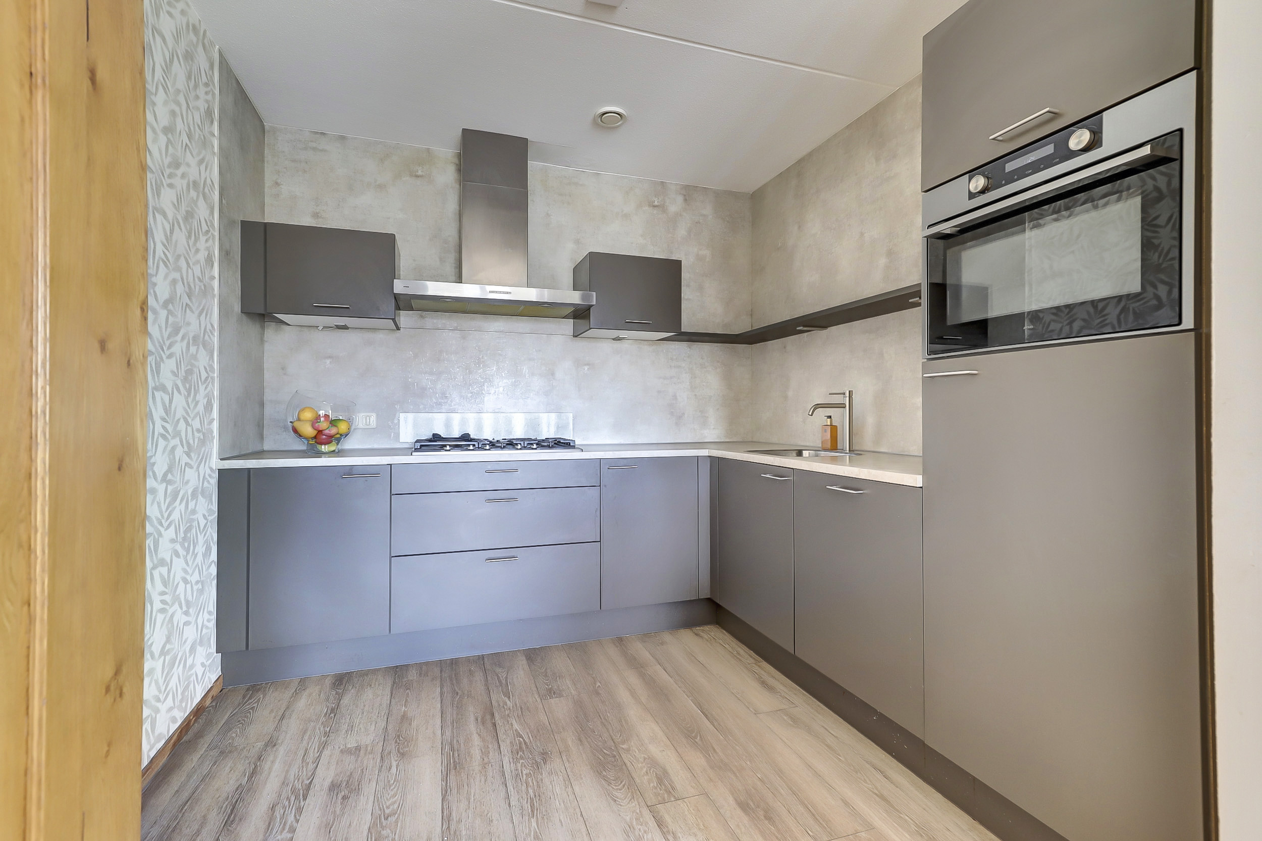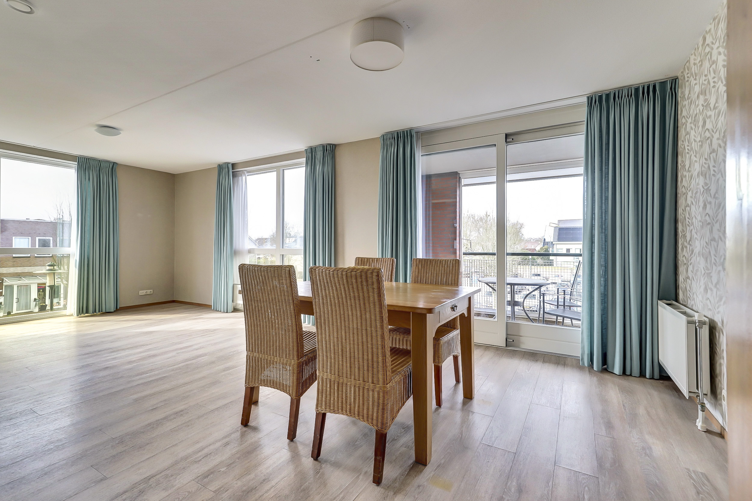De woon-/eetkamer springt eruit door de hoeveelheid licht. Door de hoekligging heb je ramen aan twee zijden en met de zuidwestelijke ligging zit je hier heerlijk in de zon. Via de glazen schuifpui loop je de loggia op: een fijne, beschutte buitenruimte met vrij uitzicht, waar je echt je eigen plek van maakt. De keuken is compleet uitgerust met een 5-pits gasfornuis met wokbrander, afzuigkap, combimagnetron, vaatwasser en een ruime koelkast.