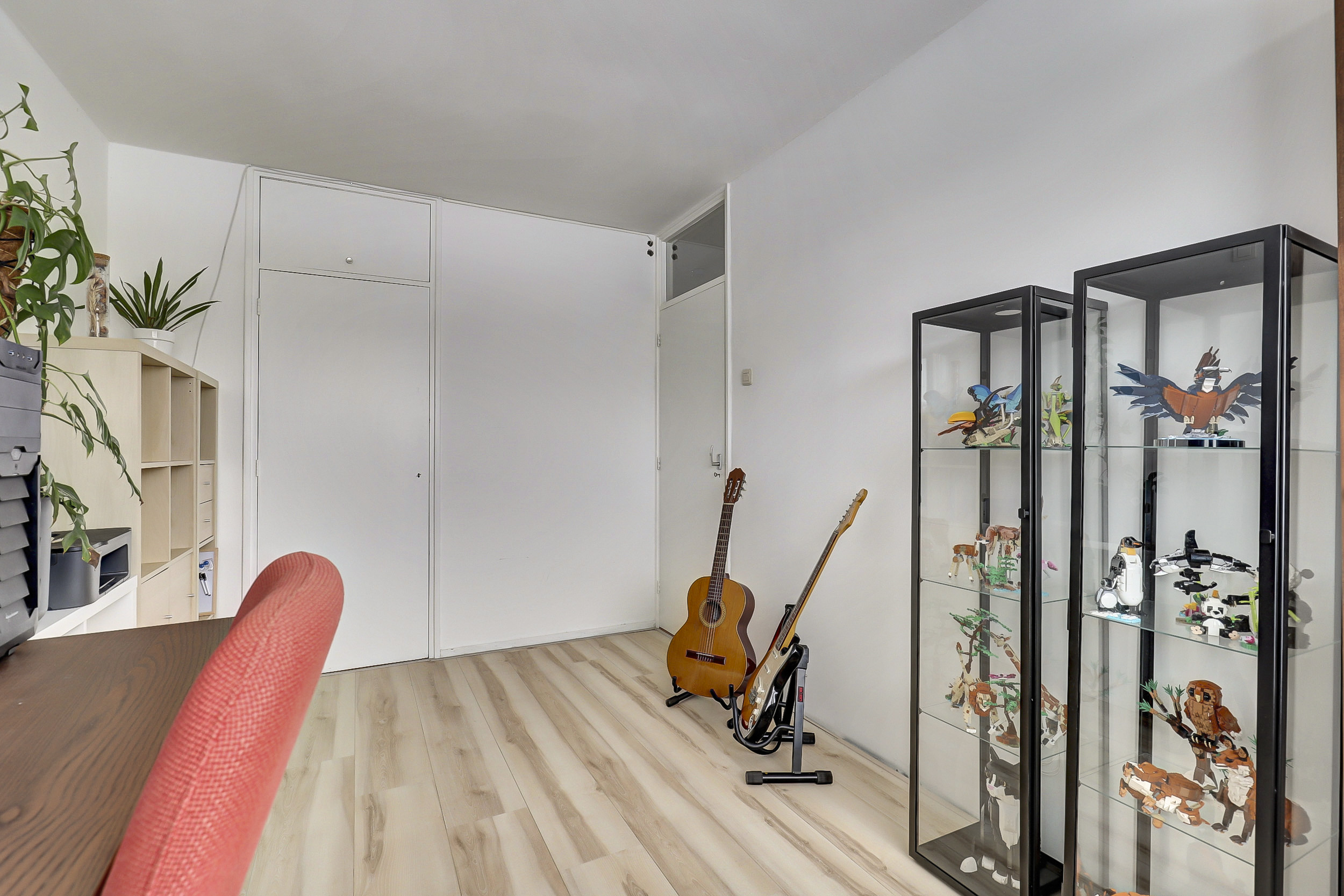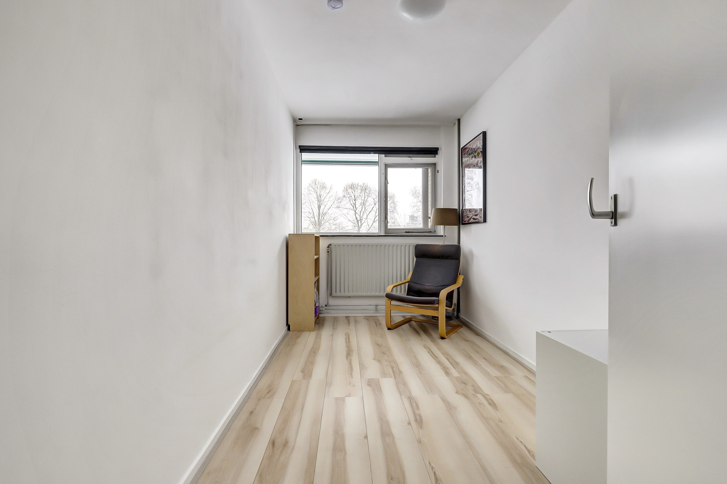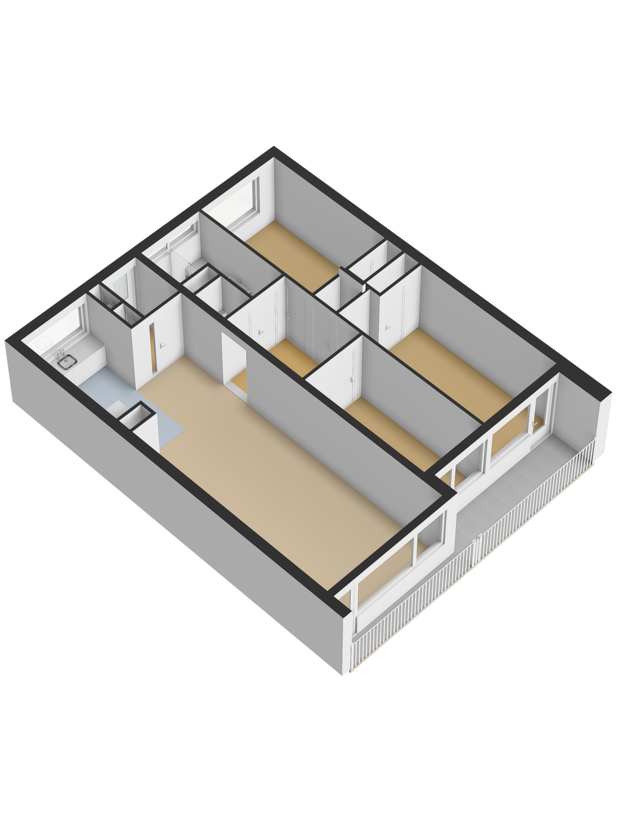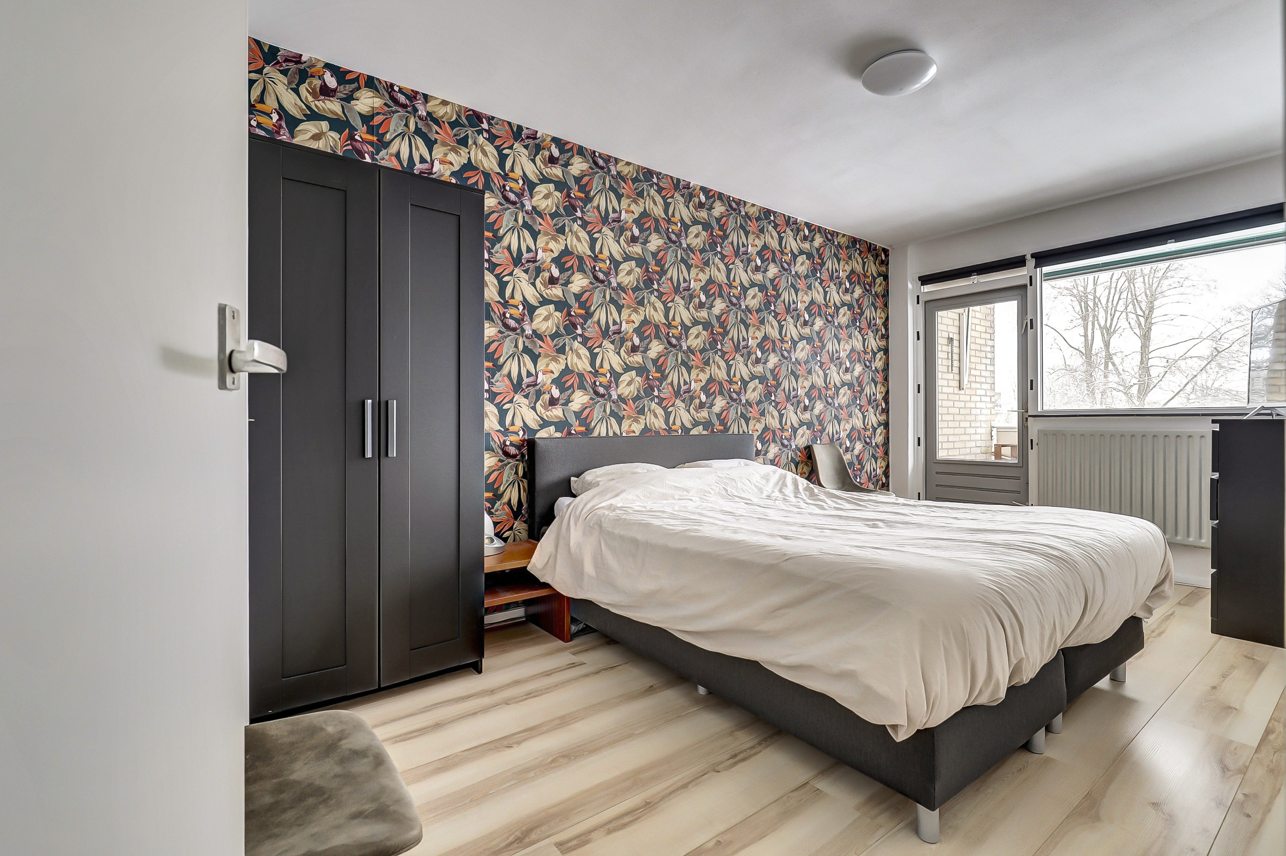 Naast de badkamer vinden we een slaapkamer met inbouwkast. Aan de achterzijde treffen we slaapkamer twee en drie aan; allemaal prima van formaat. Eén van de slaapkamers biedt toegang tot het balkon en heeft tevens een inbouwkast. Ook in de hal die deze ruimtes met elkaar verbindt, bevindt zich nog een royale inbouwkast met veel opbergruimte.