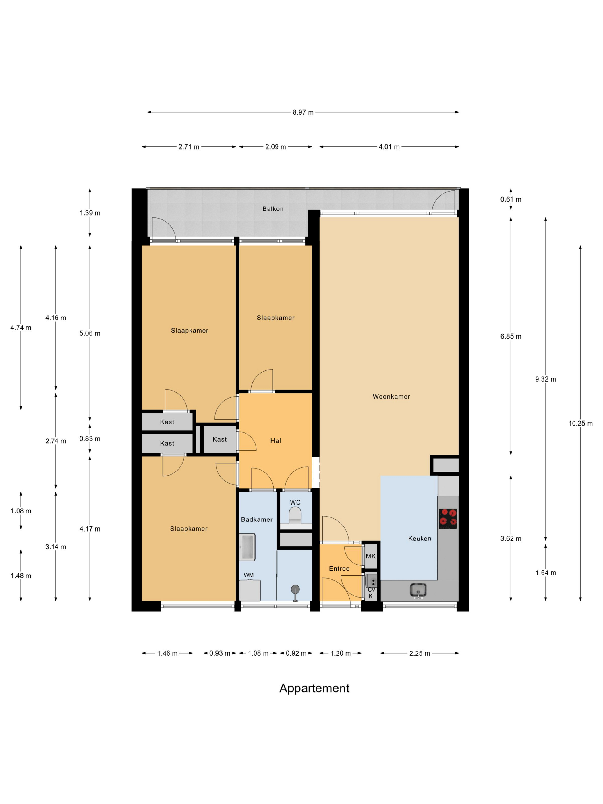 - Woonoppervlakte ca. 96 m2 / Berging ca. 7 m2 / Balkon ca. 9 m2 / Inhoud ca. 300 m3.